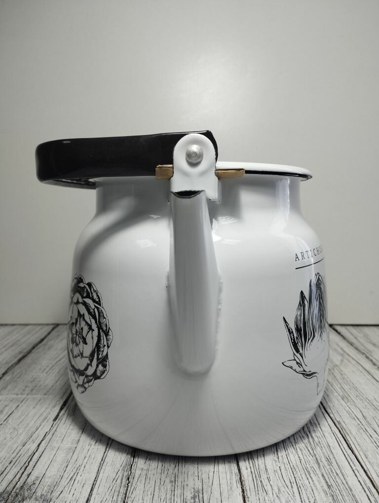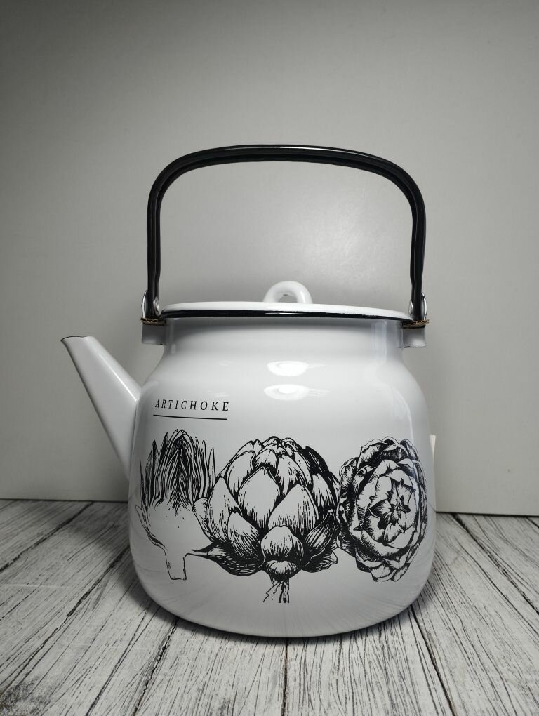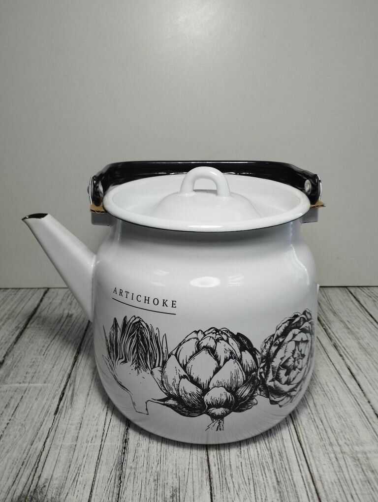 Купить Чайник эмалированный 3,5 литра Лысьва белый артишок, подвижная ручка, все виды плит, индукция