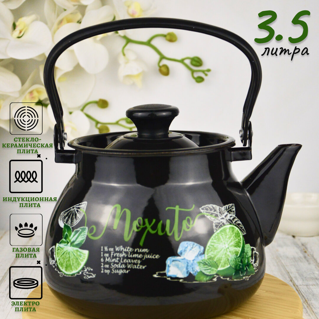 Чайник эмалированный "Мохито", черный 3,5 литра интересное: