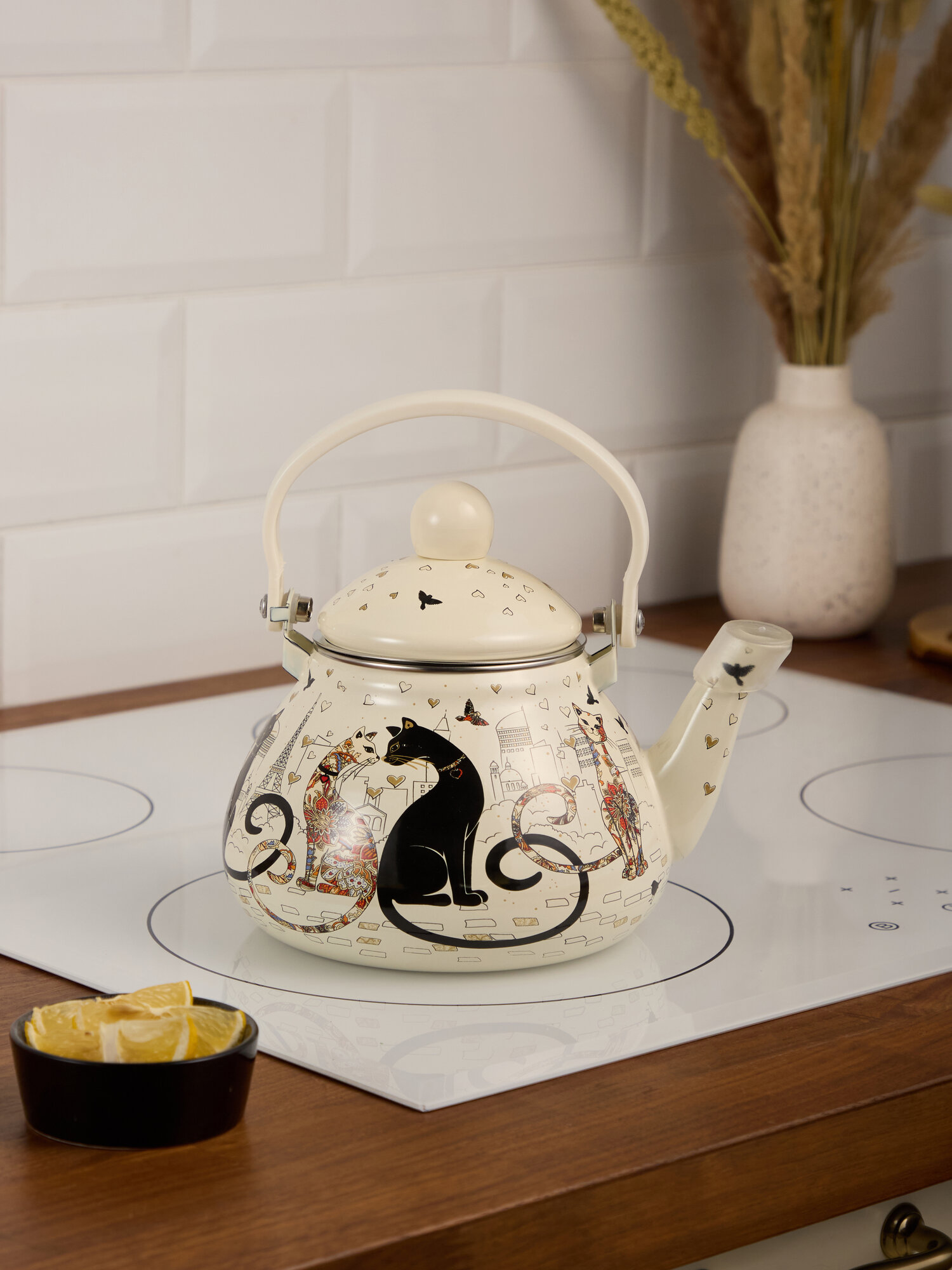 Купить Чайник Agness "Парижские Коты", эмалированный, со съемным фильтром, для всех видов плит, 1,3 л