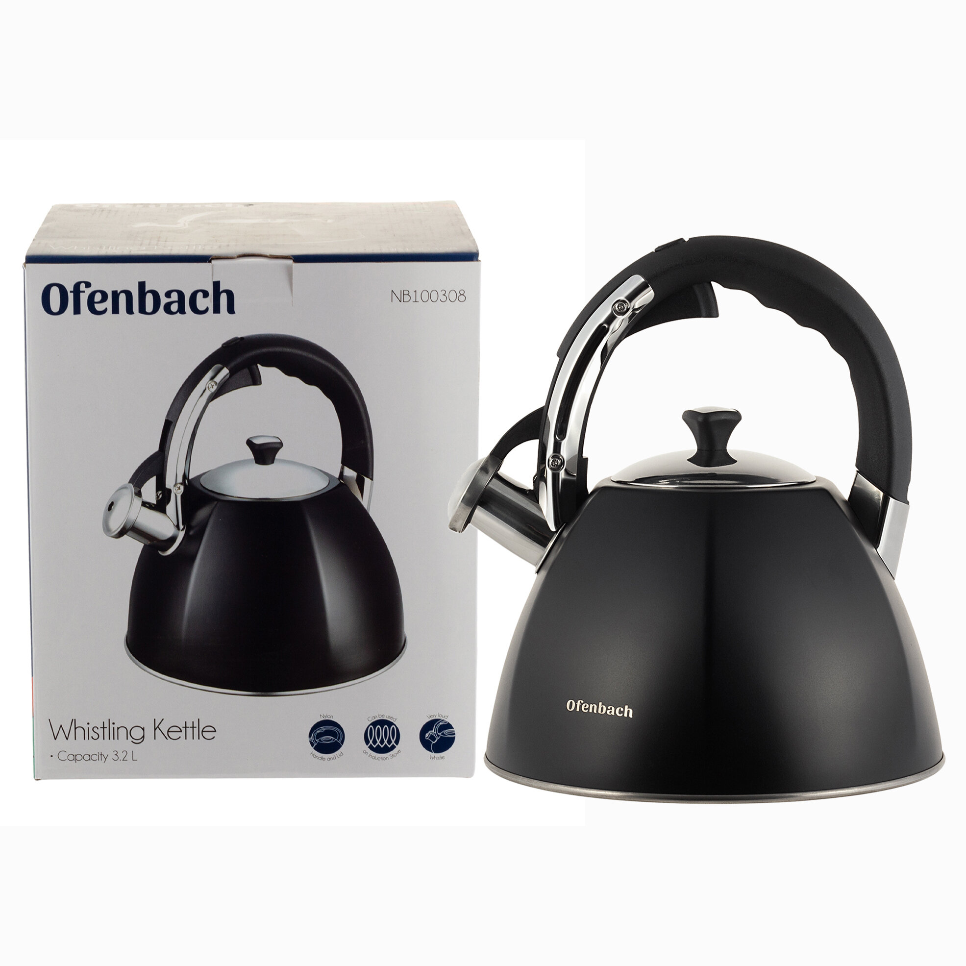 Купить Чайник 3,2 л. из нержавеющей стали со свистком Ofenbach NB 100308 (3,2 л. / черный)