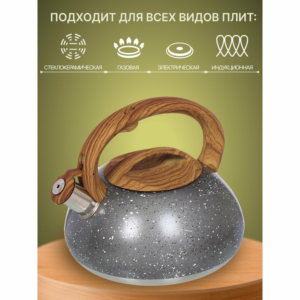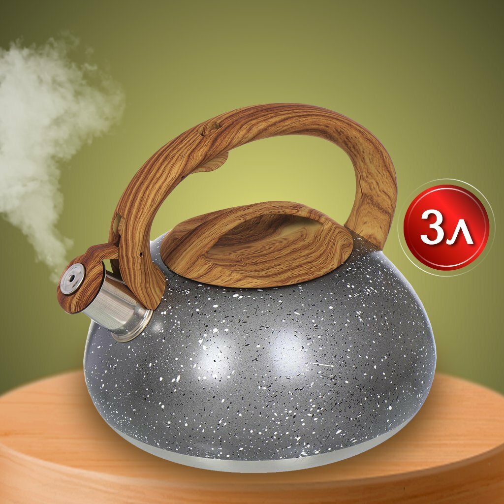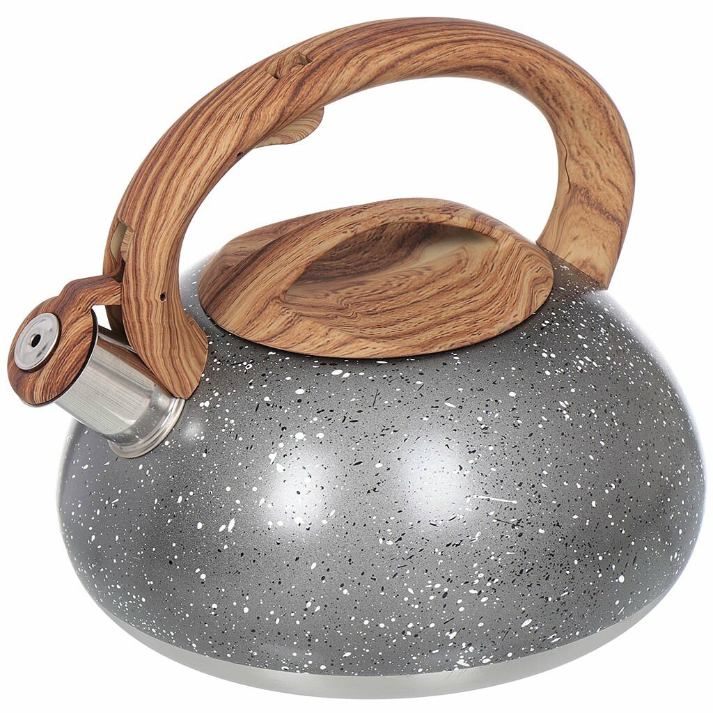 Чайник нержавеющая сталь, 3 л, со свистком, матовый, ручка с силиконовым покрытием, Daniks, серый мрамор, DSC-8799 интересное: