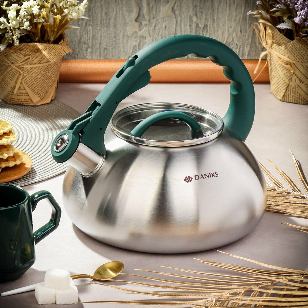 Чайник Daniks DSC-8805, 3 л, нерж. сталь, со свистком, зелёный интересное:
