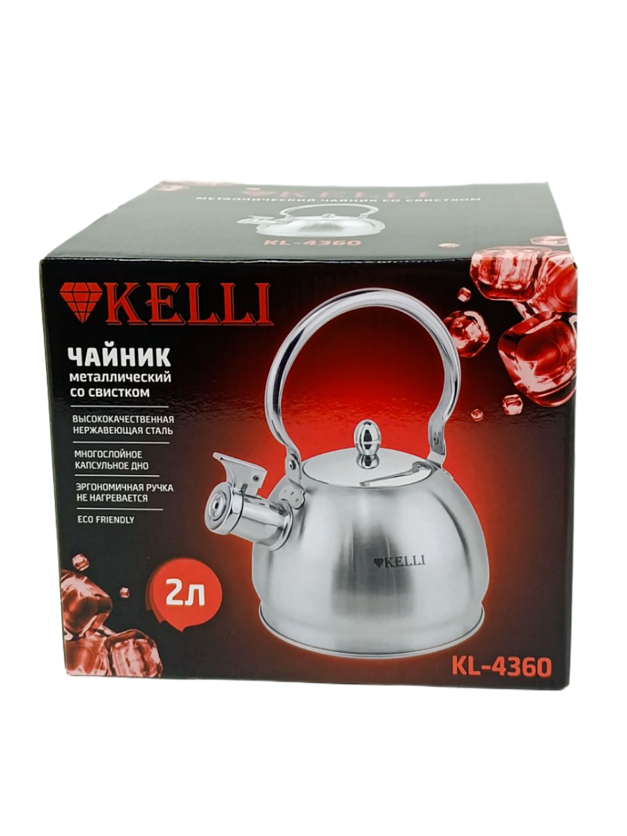 Купить Чайник KELLI KL-4360 со свистком, нержавеющая сталь, серебристый, 2 л