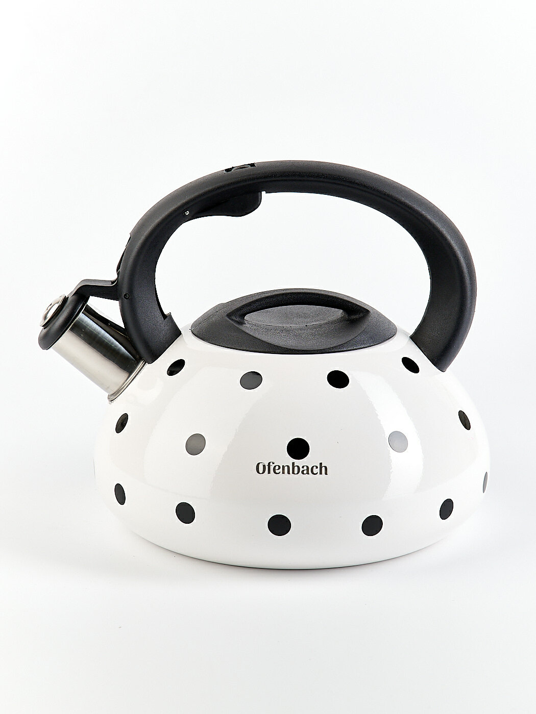Чайник 2,5 л. из нержавеющей стали со свистком Ofenbach NB-100301 горошек (100301WH / белый) интересное: