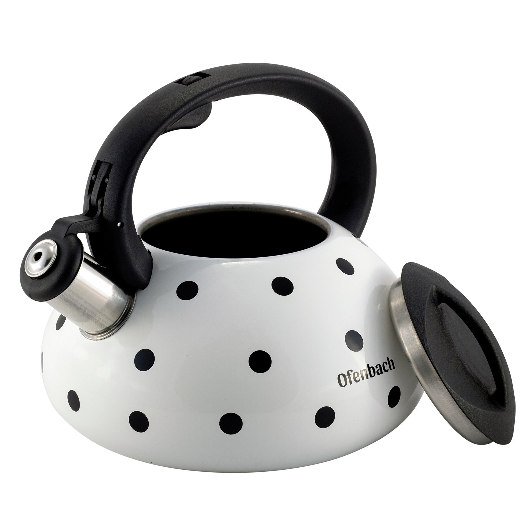 Чайник 2,5 л. из нержавеющей стали со свистком Ofenbach NB-100301 горошек (100301BL / черный)