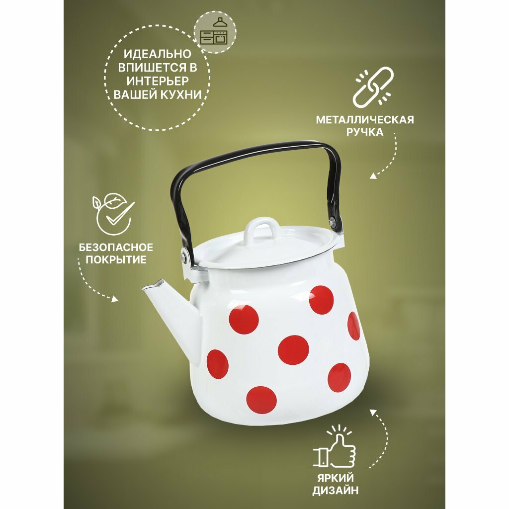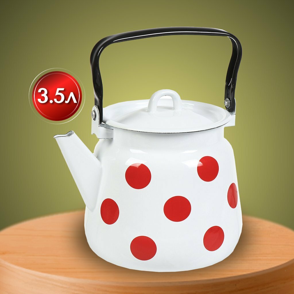 Чайник сталь, эмалированное покрытие, 3.5 л, петля, Сибирские товары, Красный горох, белый, С2716*79 интересное: