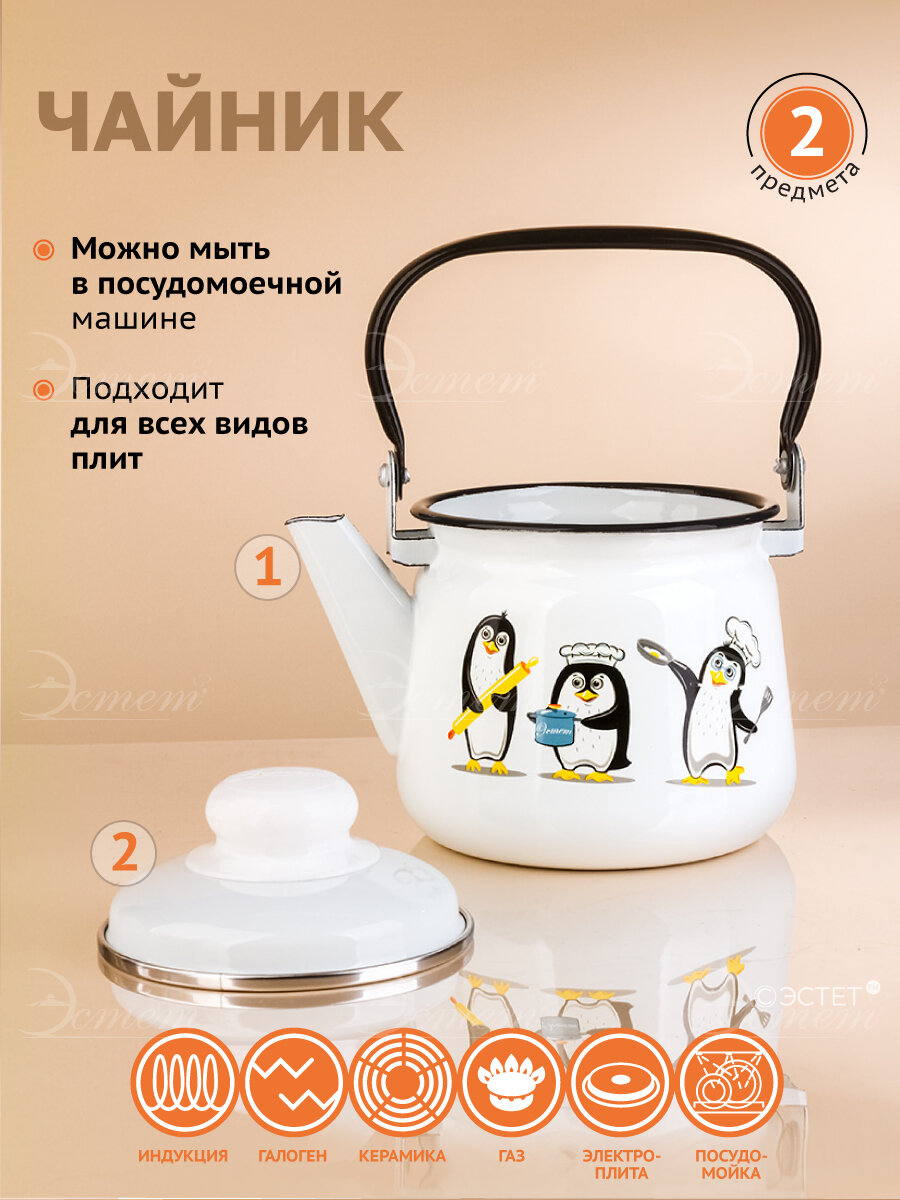 Чайник эмалированный для плиты 1.5 л интересное: