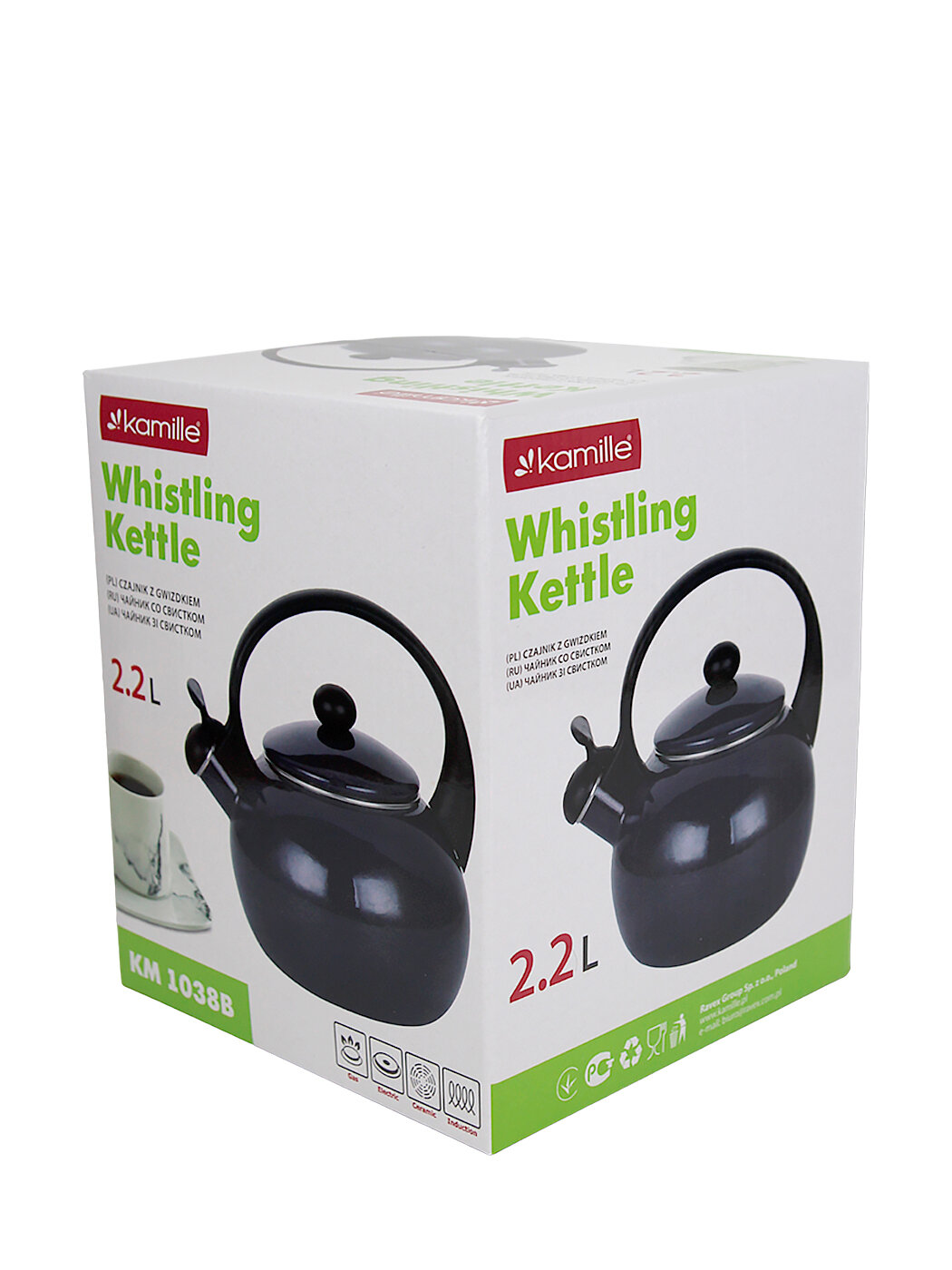 Чайник 2,2 л. эмалированный со свистком Kamille KM 1038A с черной бакелитовой ручкой (2,2 л. / черный)