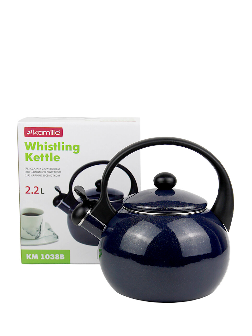 Купить Чайник 2,2 л. эмалированный со свистком Kamille KM 1038B с черной бакелитовой ручкой (2,2 л. / синий)