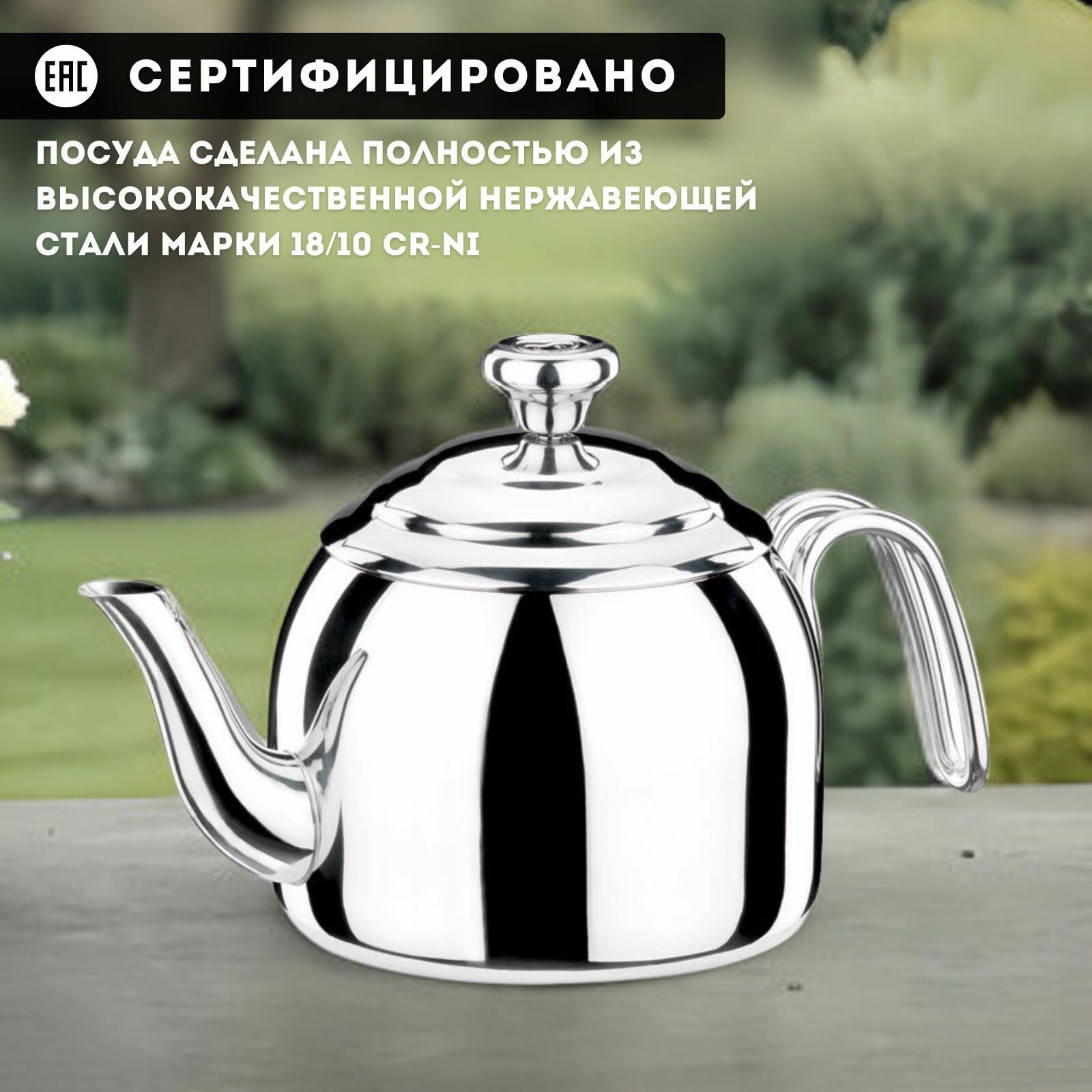 Чайник для плиты 1,3 л Korkmaz Droppa из нержавеющей стали, без свистка интересное: