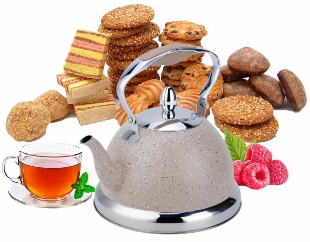 Чайник нержавеющий со свистком Мерали 2 литра для всех видов плит включая индукционную