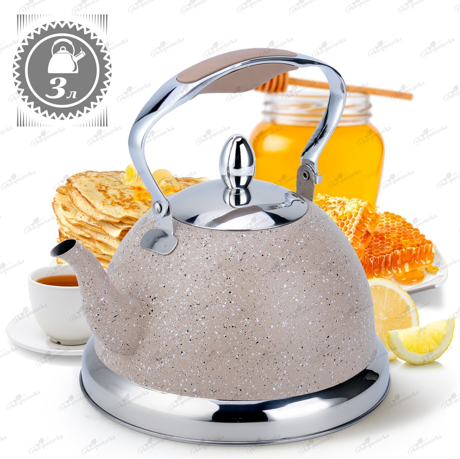 Чайник из нержавеющей стали со свистком Мерали 3 литра для газовой электрической и индукционной плиты