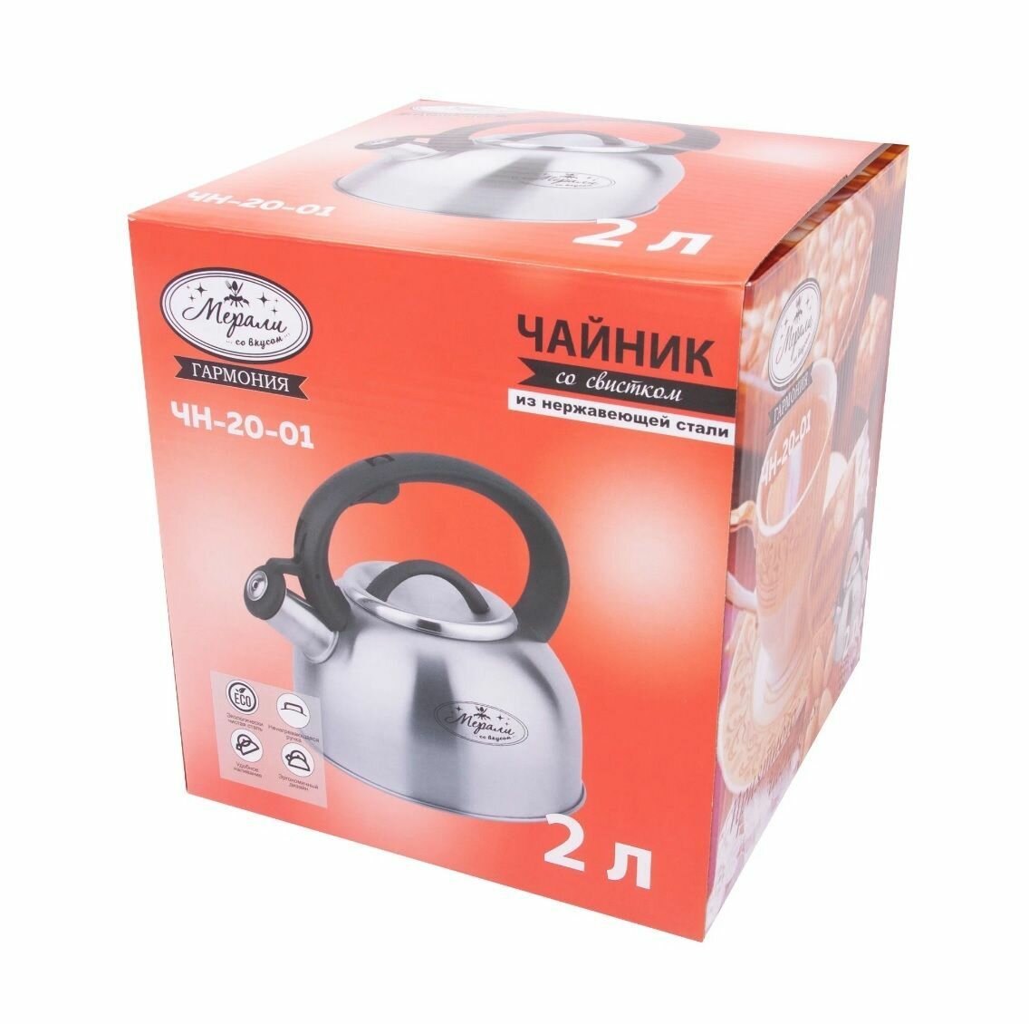 Купить Чайник нержавеющий со свистком Мерали 2 литра для всех видов плит включая индукционную