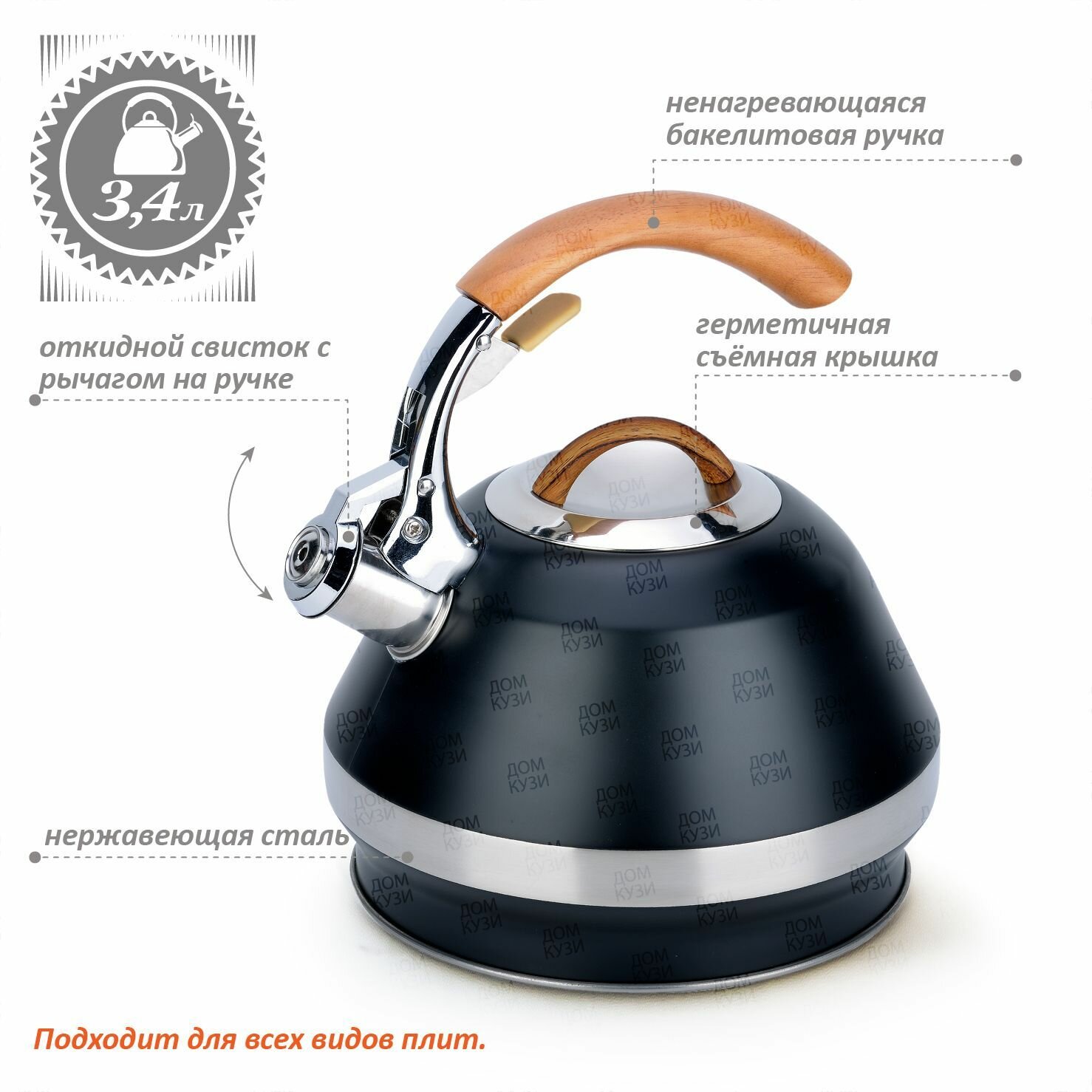СохранитьЧайник со свистком 3,5 литра из нержавеющей стали Мерали для газовой электрической и индукционной плиты интересное: