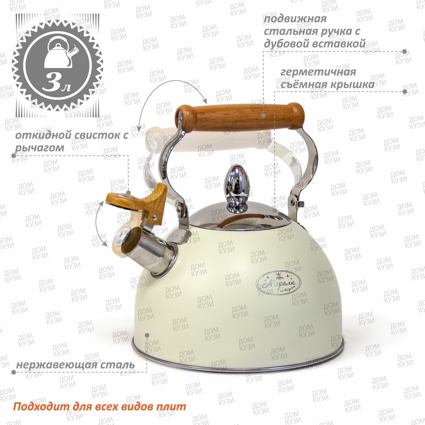 Купить Чайник со свистком 3 литра из нержавеющей стали Мерали для газовой электрической и индукционной плиты