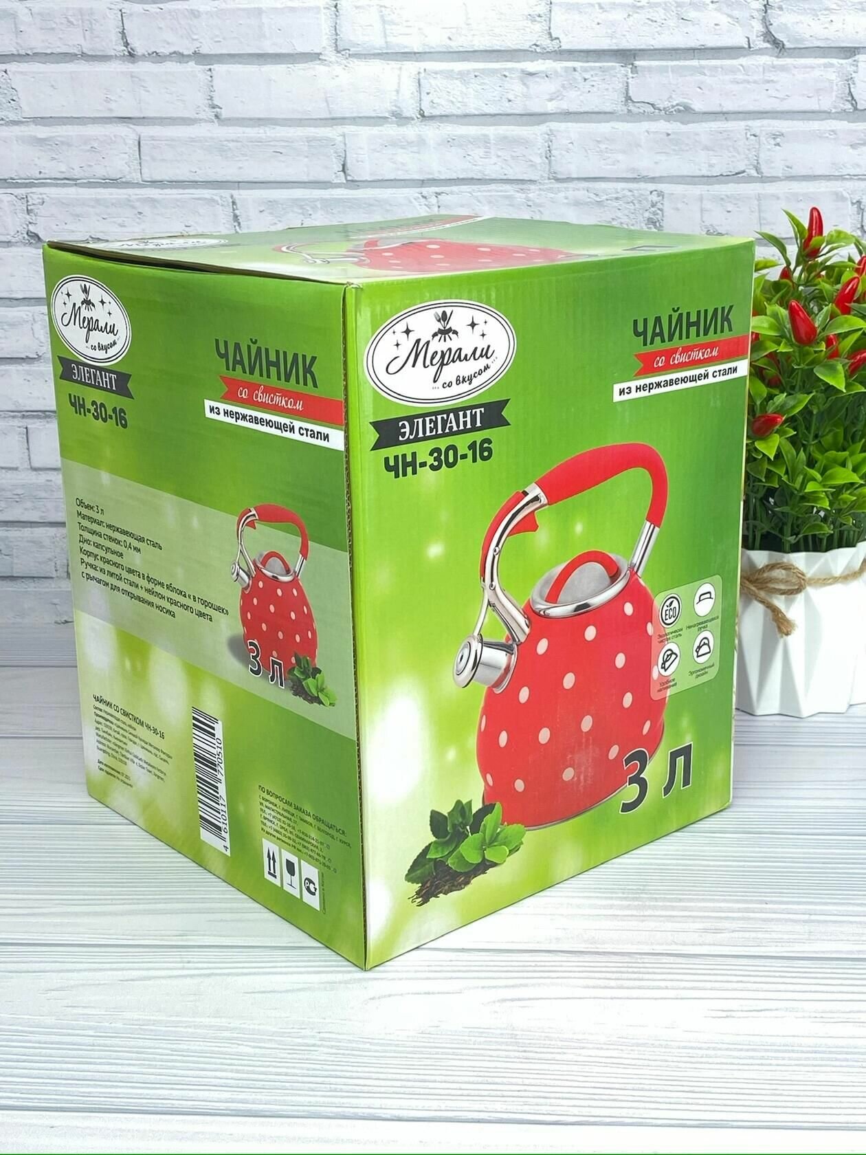 Чайник со свистком Мерали 3 литра из нержавеющей стали для газовой электрической и индукционной плиты