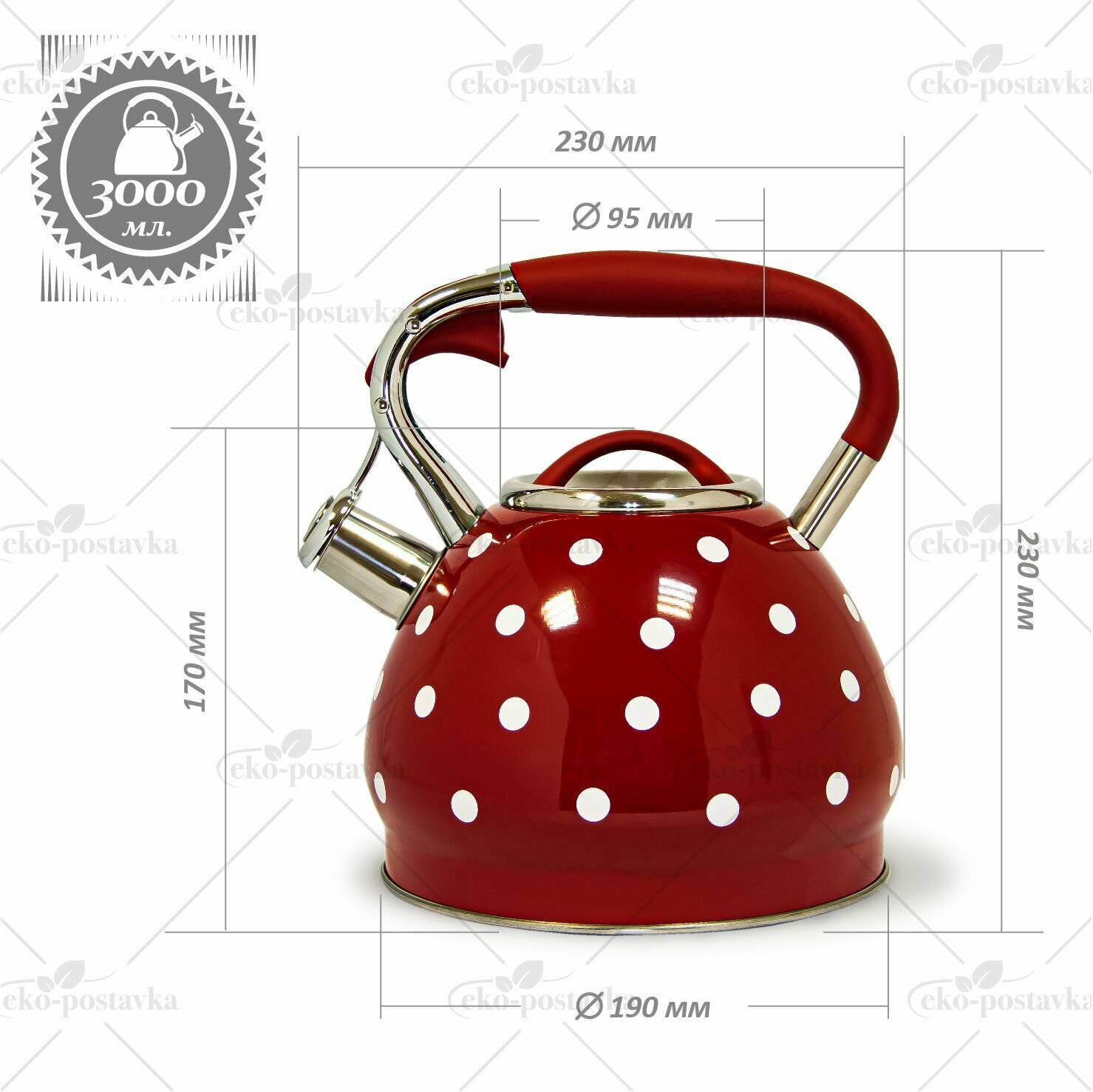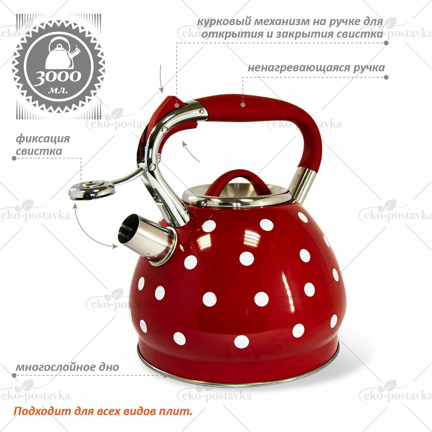 Чайник из нержавеющей стали со свистком Мерали 3 литра для газовой электрической и индукционной плиты