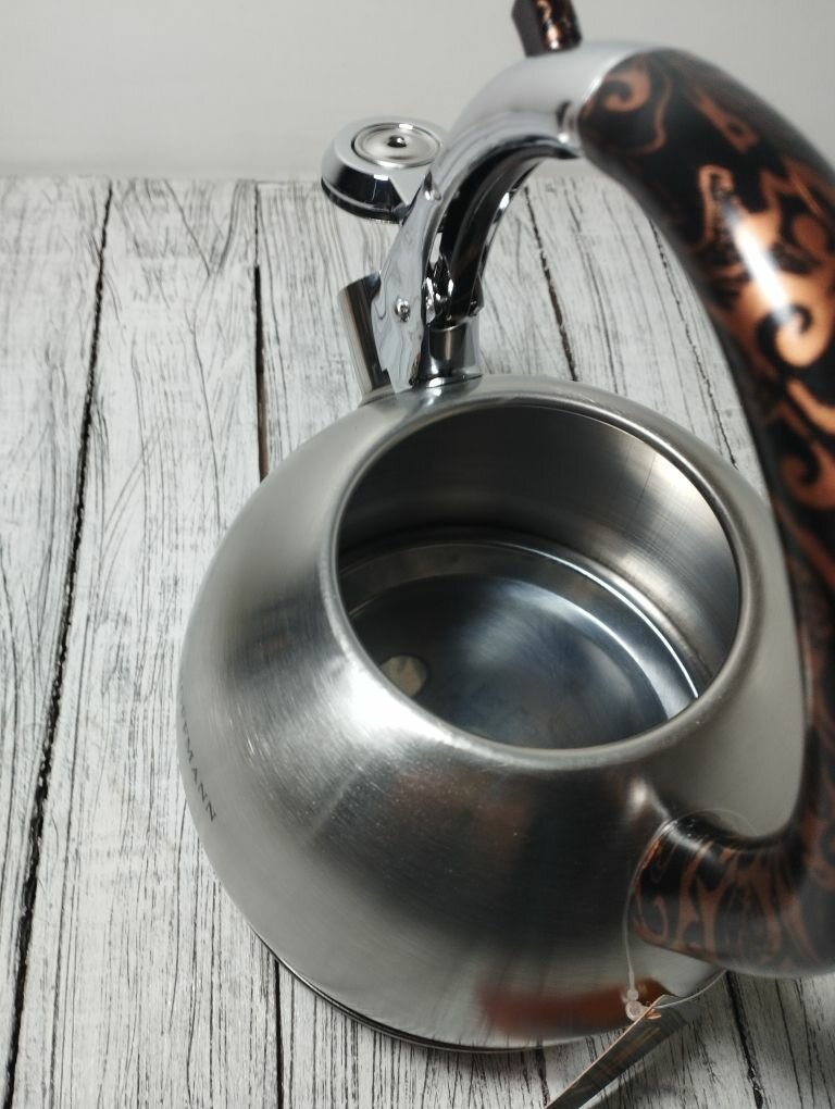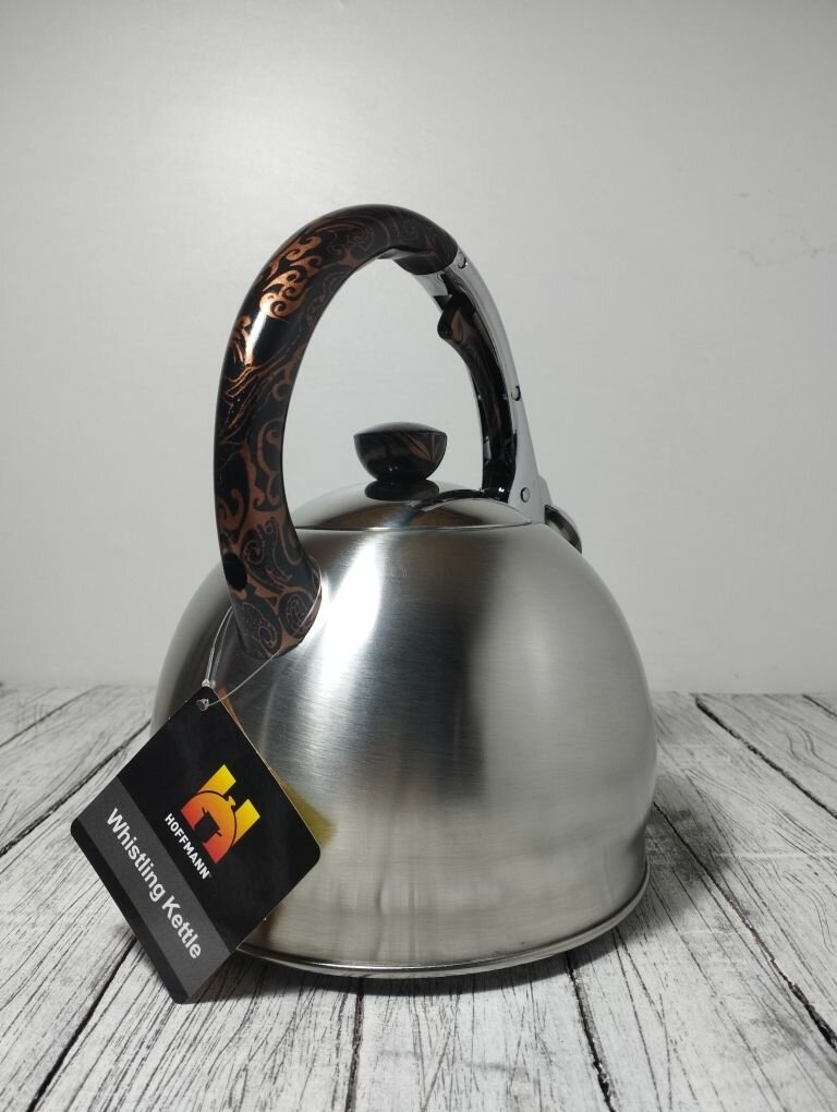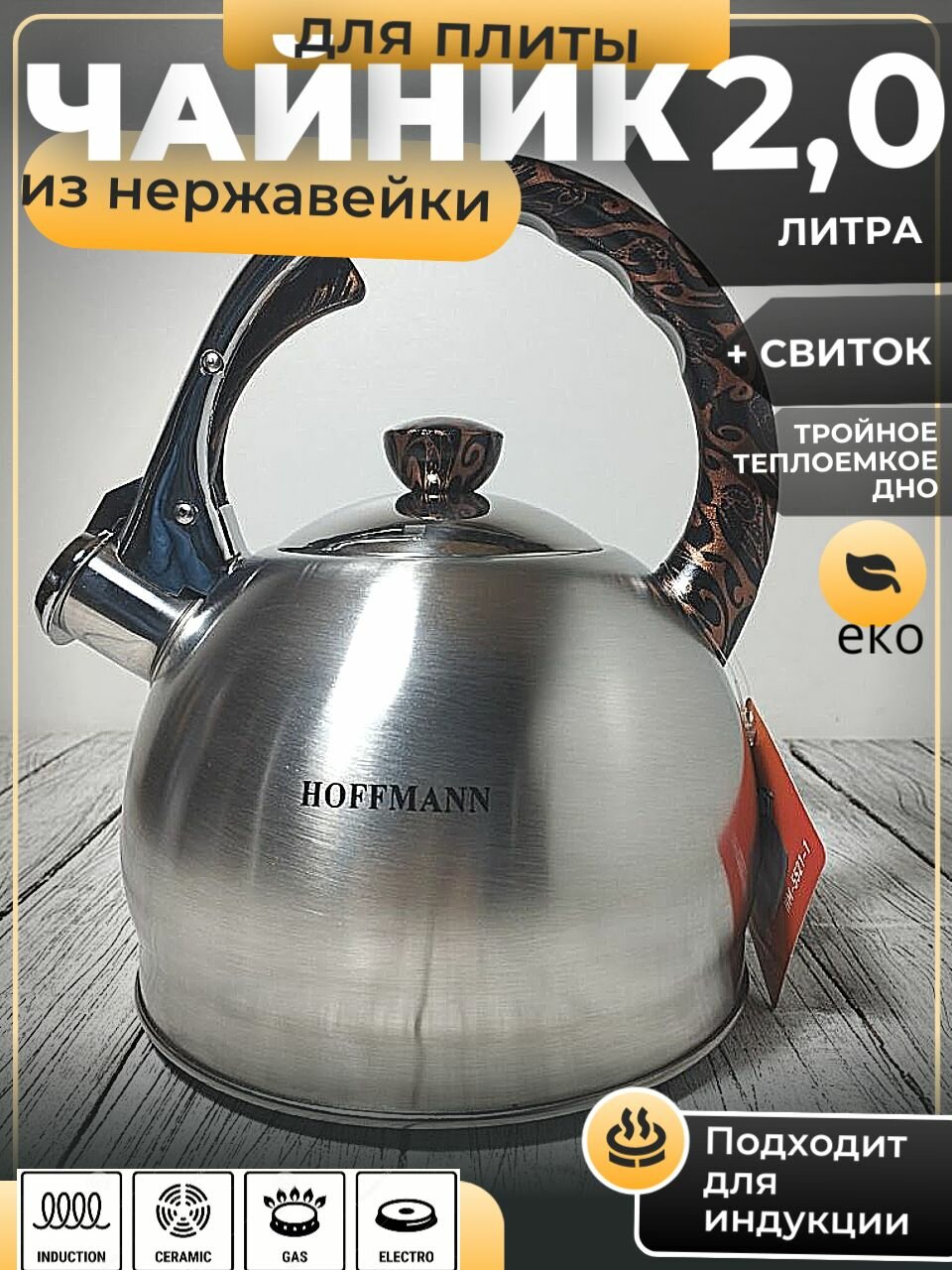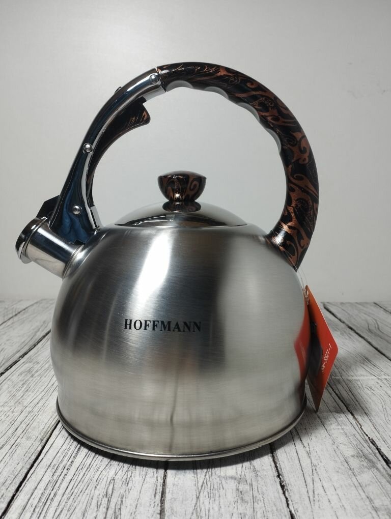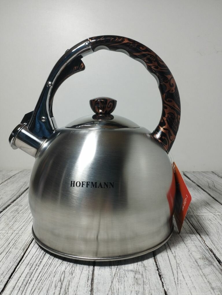 Чайник 2,5л из нержавейки, матовый со свистком толстое дно HOFFMANN интересное: