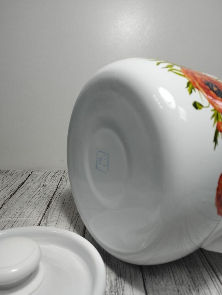 Чайник эмалированный 3,5 литра Лысьва белый китайская роза, подвижная ручка, все виды плит, индукция