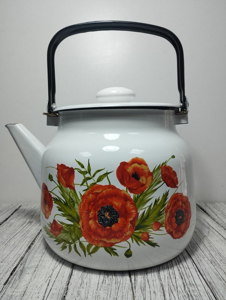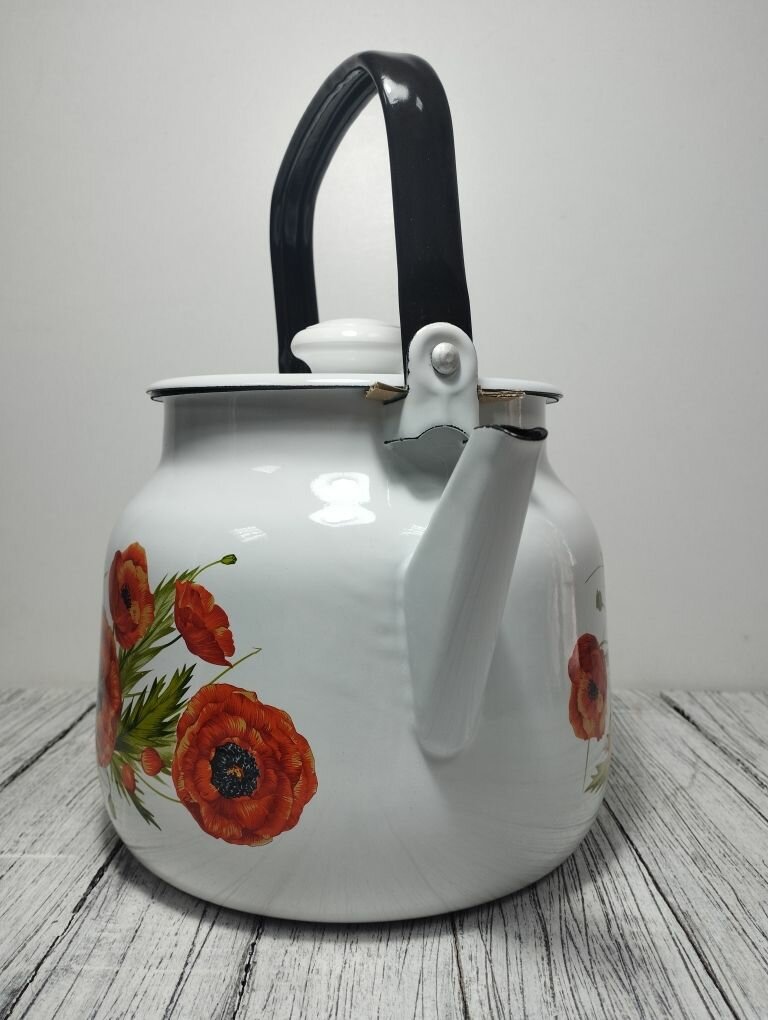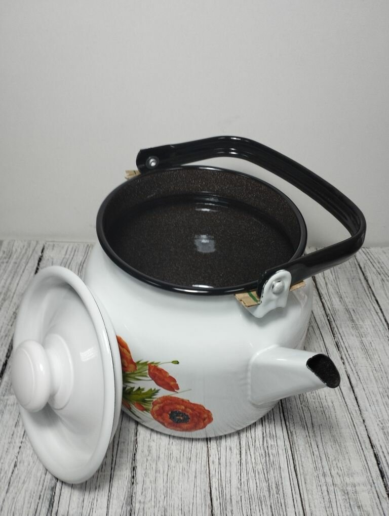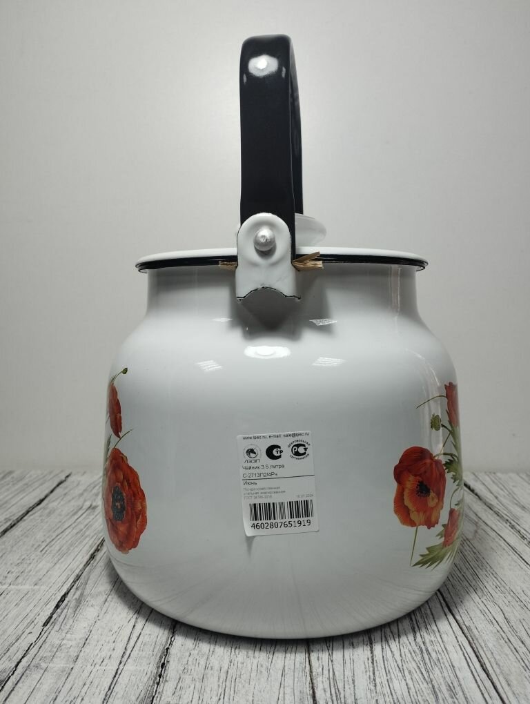 Купить Чайник эмалированный 3,5 литра Лысьва белый, июнь, подвижная ручка, все виды плит, индукция