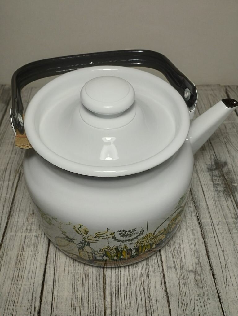 СохранитьЧайник эмалированный 3,5 литра Лысьва белый винтаж, подвижная ручка, все виды плит, индукция интересное: