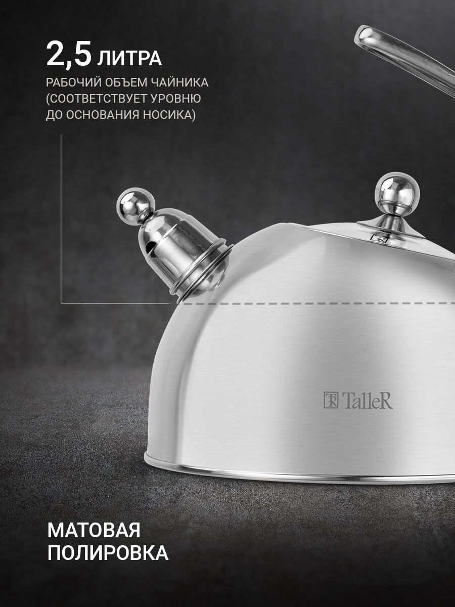 Чайник для всех типов плит TalleR TR-11374 Инесс 2.5 л, со свистком интересное: