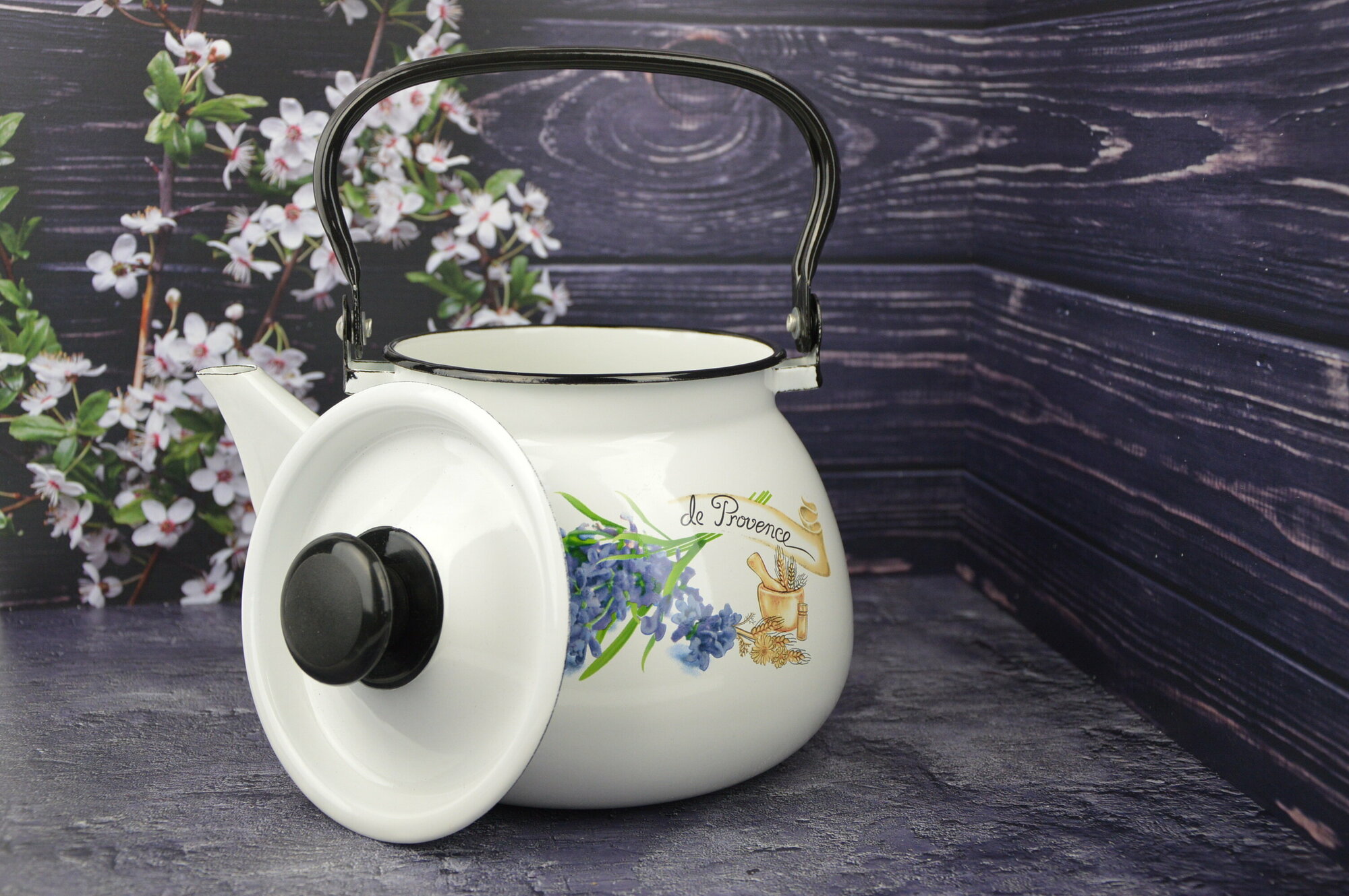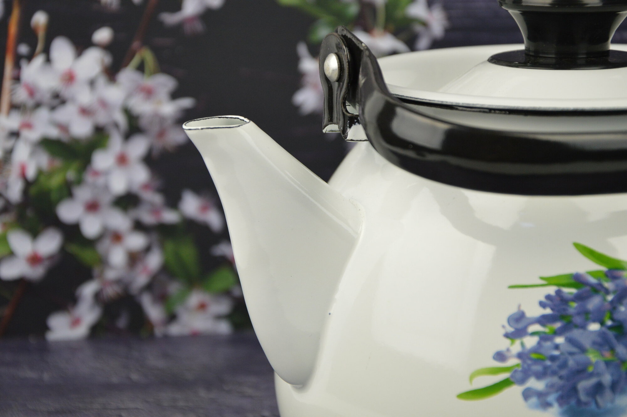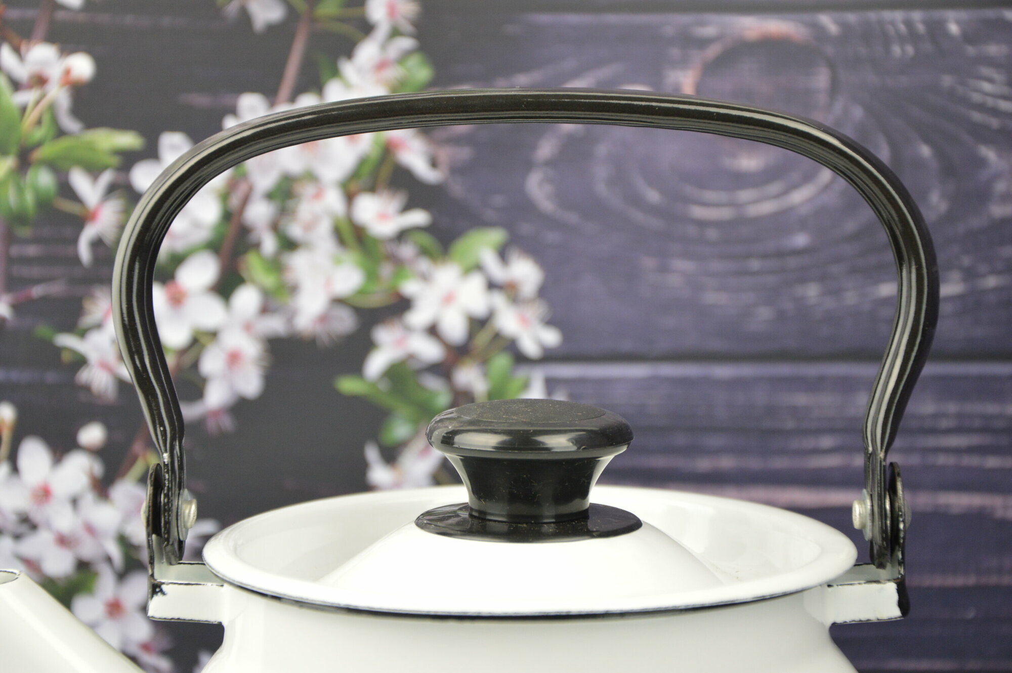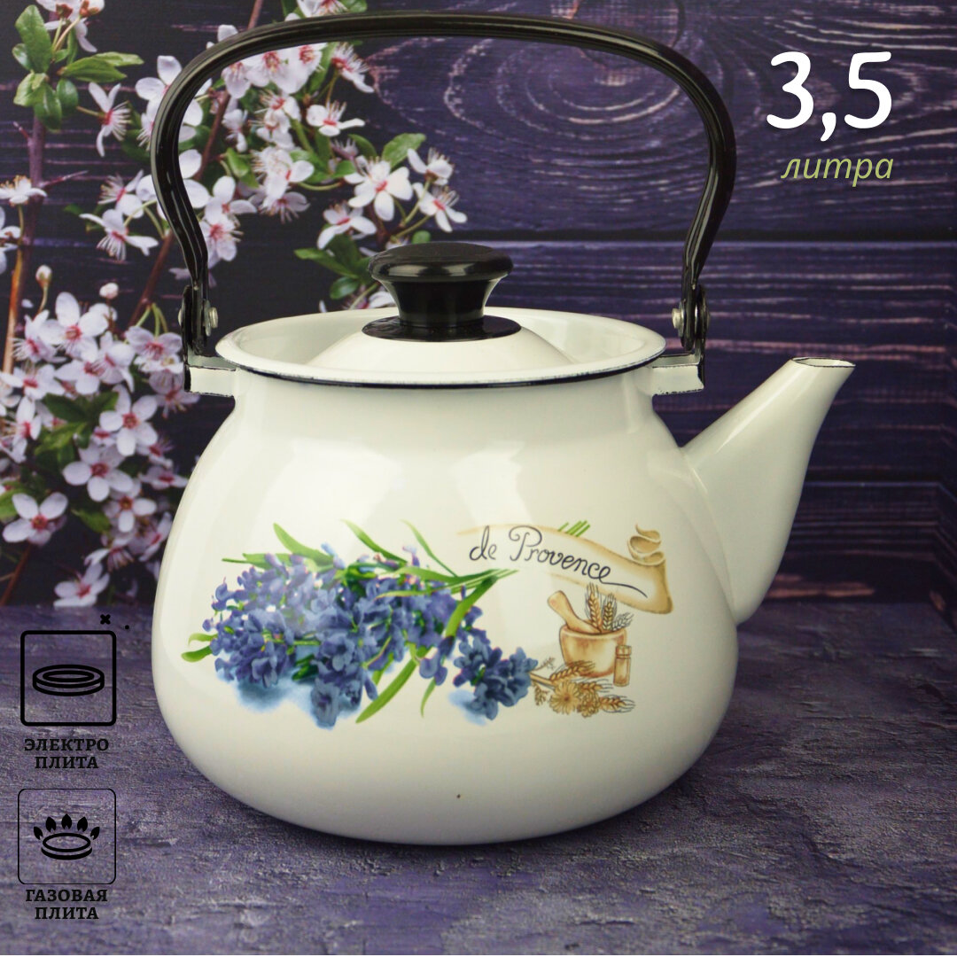 Чайник эмалированный с металлической ручкой "Аромат" 3,5 л, белый с декором интересное: