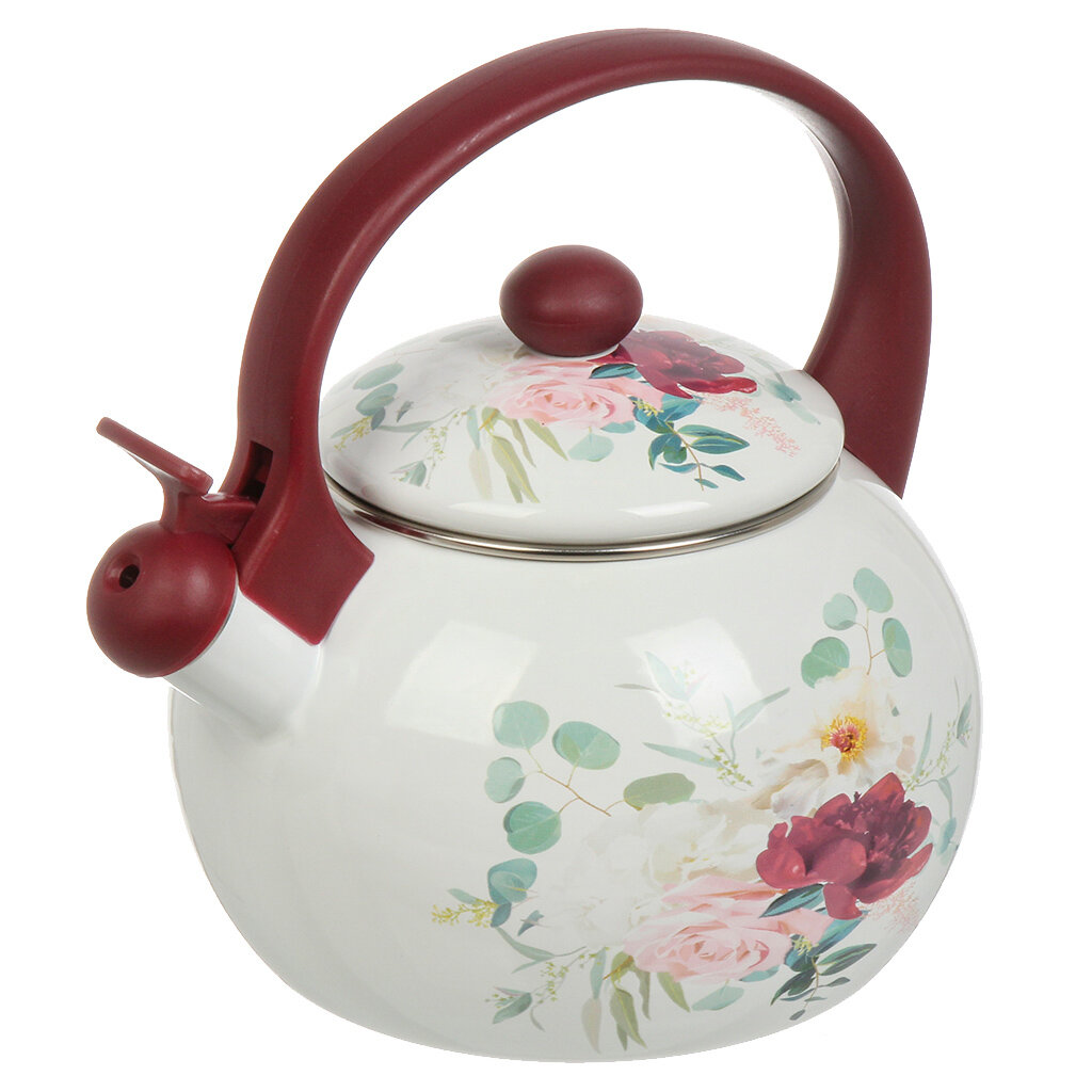 Чайник для плиты со свистком, 2.2 л, из эмалированной стали, Daniks, Букет, индукция интересное: