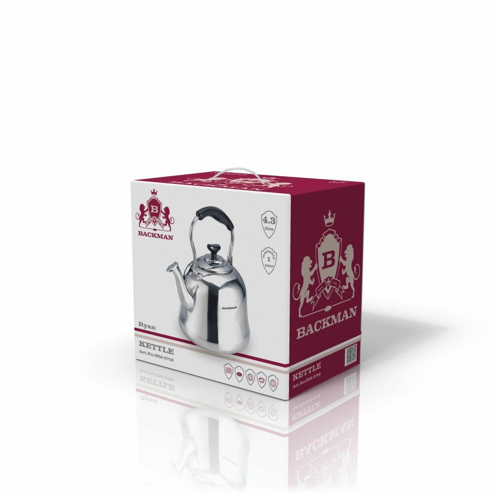 Металлический чайник со свистком для плиты, 3 л, нержавеющая сталь, индукционное дно Zeidan Зейдан 4467