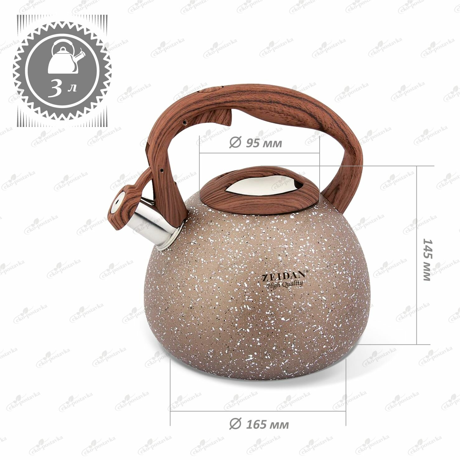 СохранитьЧайник со свистком 3 литра Zeidan из нержавеющей стали с покрытием "soft-touch" для всех видов плит интересное: