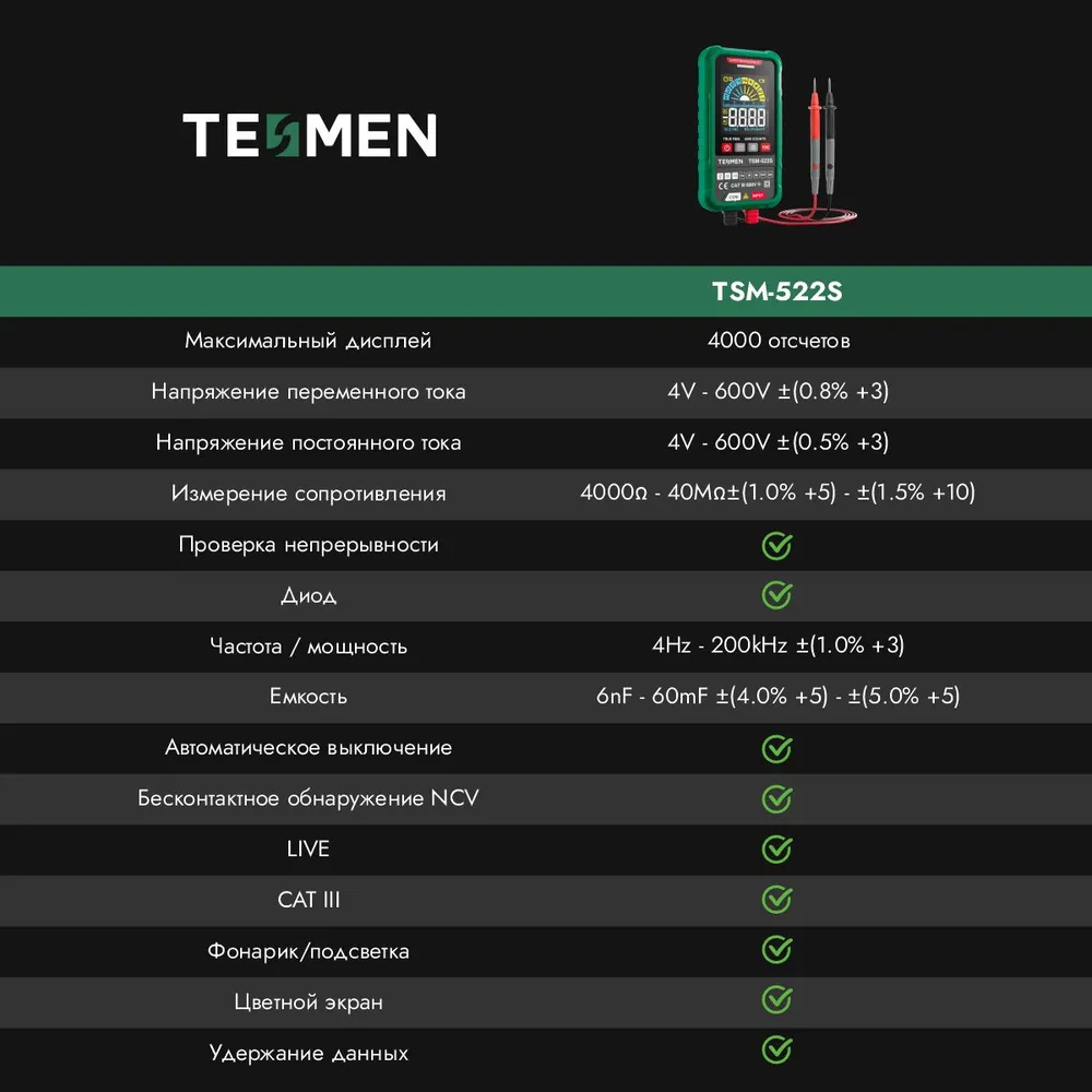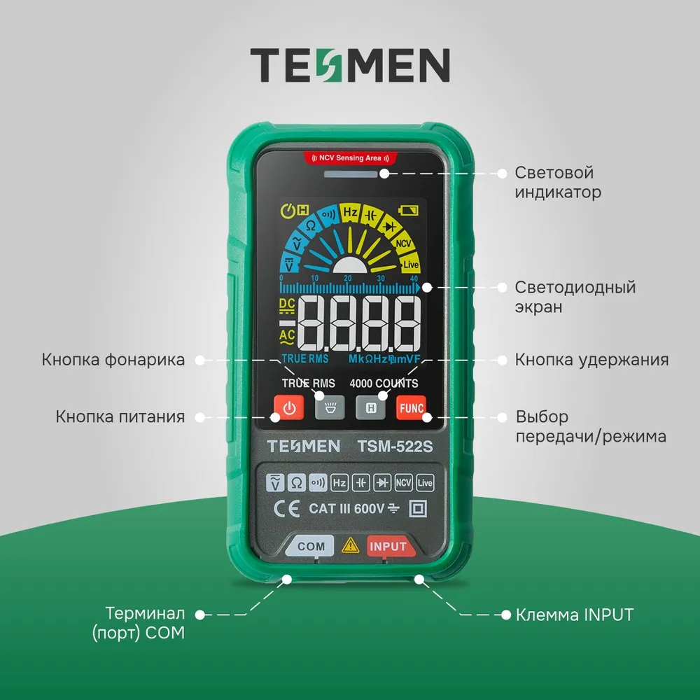 Мультиметр цифровой автоматический TESMEN TSM-522S тестер с звуковой прозвонкой интересное: