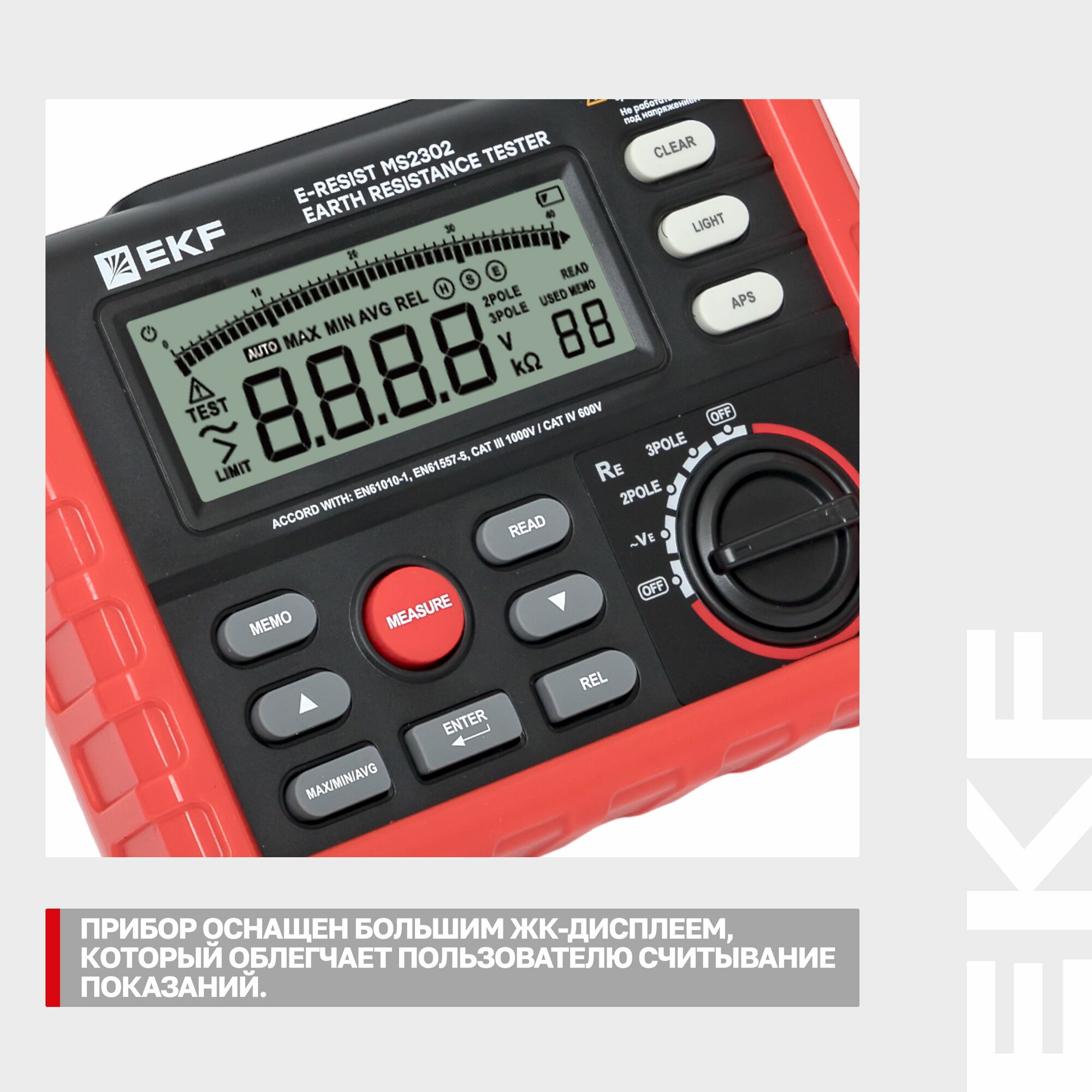 Измеритель сопротивления заземления цифровой EKF Professional E-Resist MS2302 интересное: