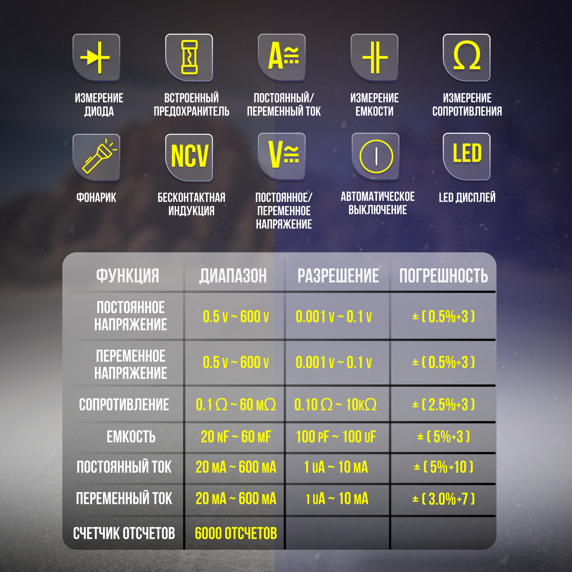 Автоматический цифровой мультиметр высокой точности, 6000 отсчетов, NCV, тестер интересное: