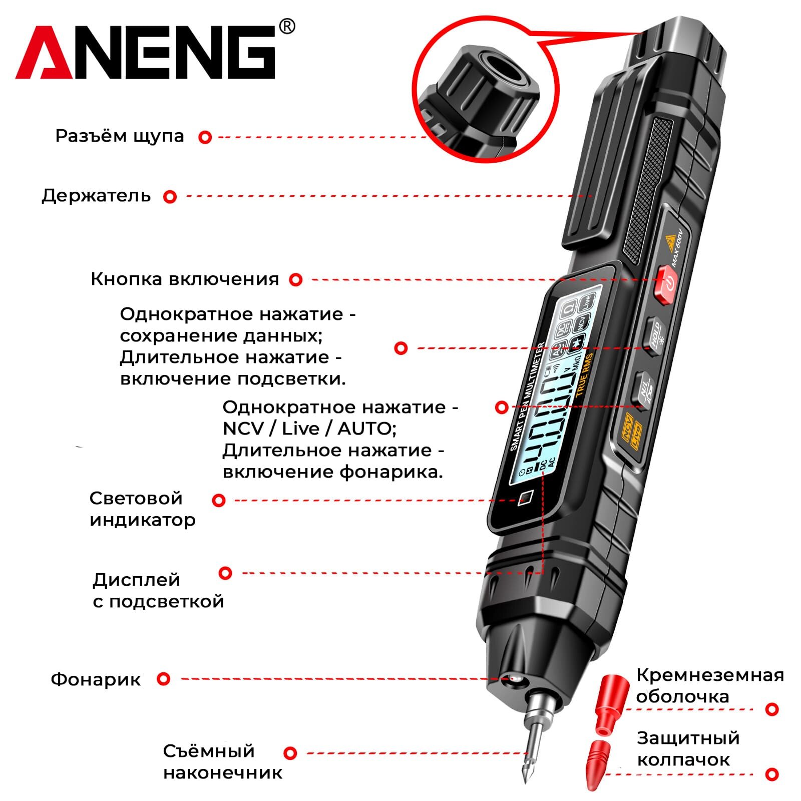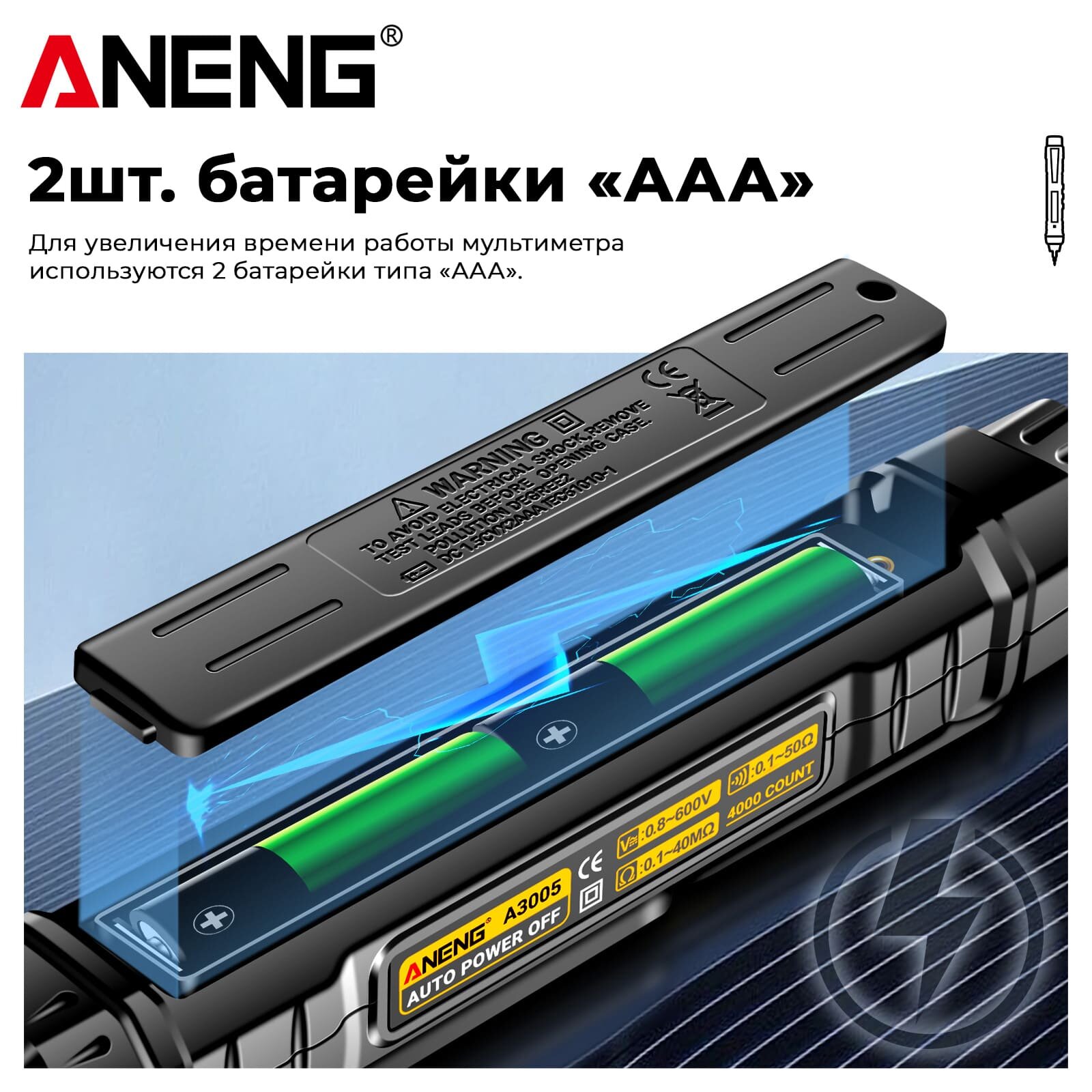 Мультиметр автоматический Aneng A3005 (Smart, NCV, True RMS) с измерением сопротивления, определение фазы и нуля, 4000 отсчетов, батареи AAА интересное: