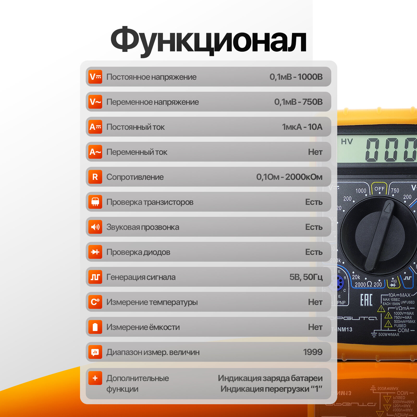 Мультиметр цифровой тестер токоизмерительный в калоше Орбита OT-INM13 интересное: