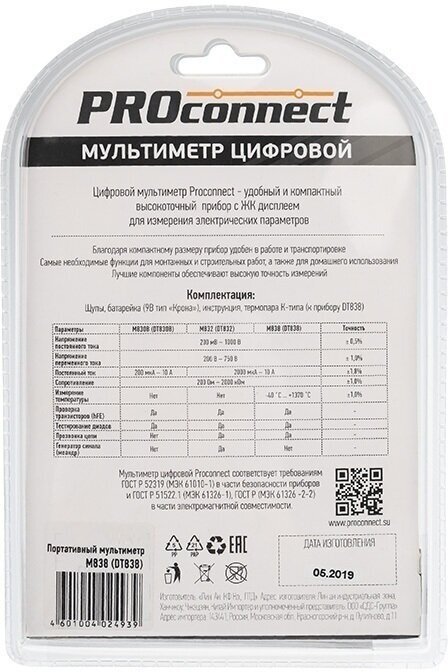 Электроизмерительные приборы Proconnect Мультиметр портативный M838 (DT838) интересное: