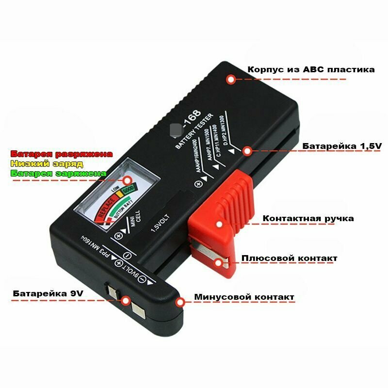 Универсальный аналоговый тестер батареек и аккумуляторов 1,5 В и 9 В, BT-168 интересное: