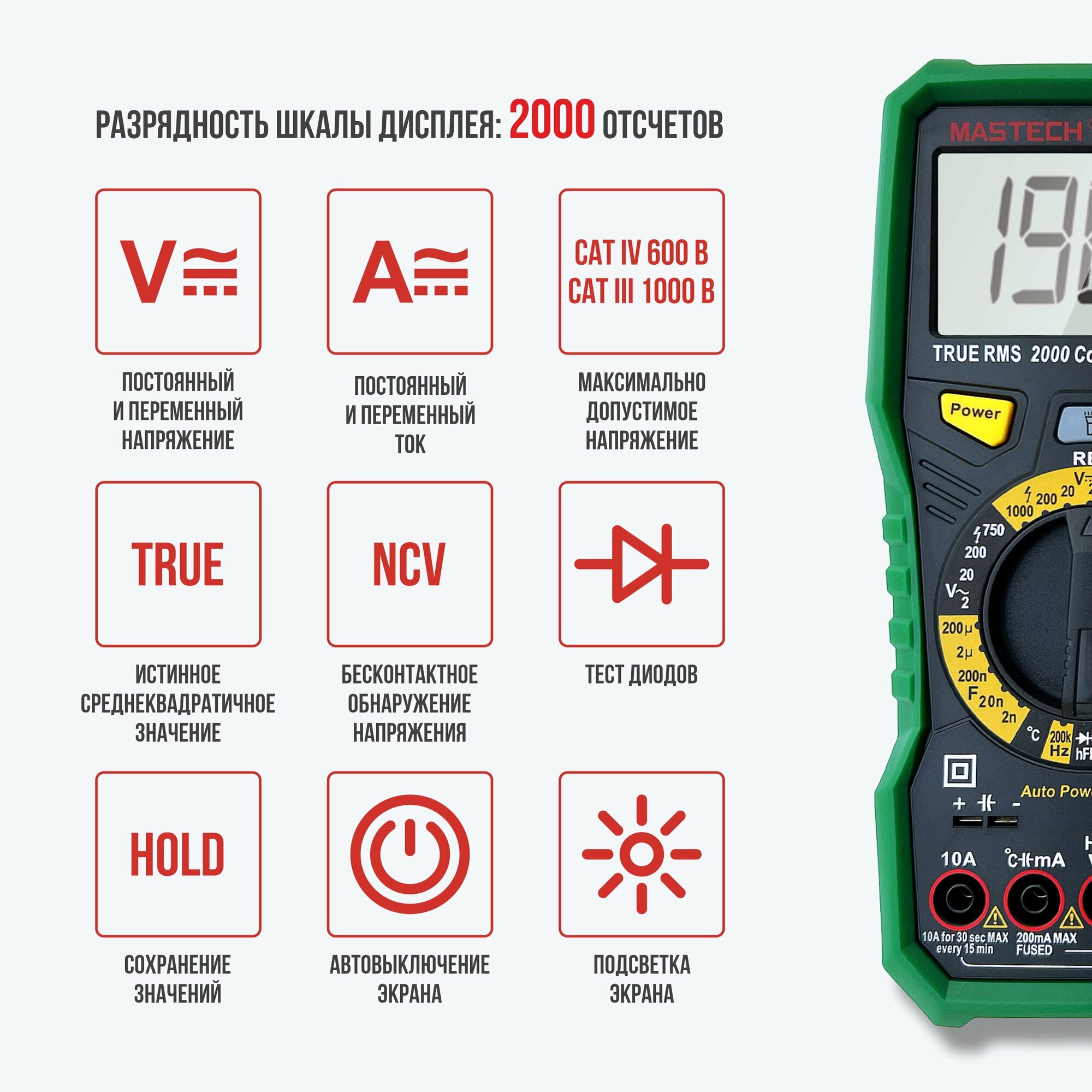 Купить Мультиметр MS890A MASTECH 1000V True RMS фонарик ёмкость частота температура