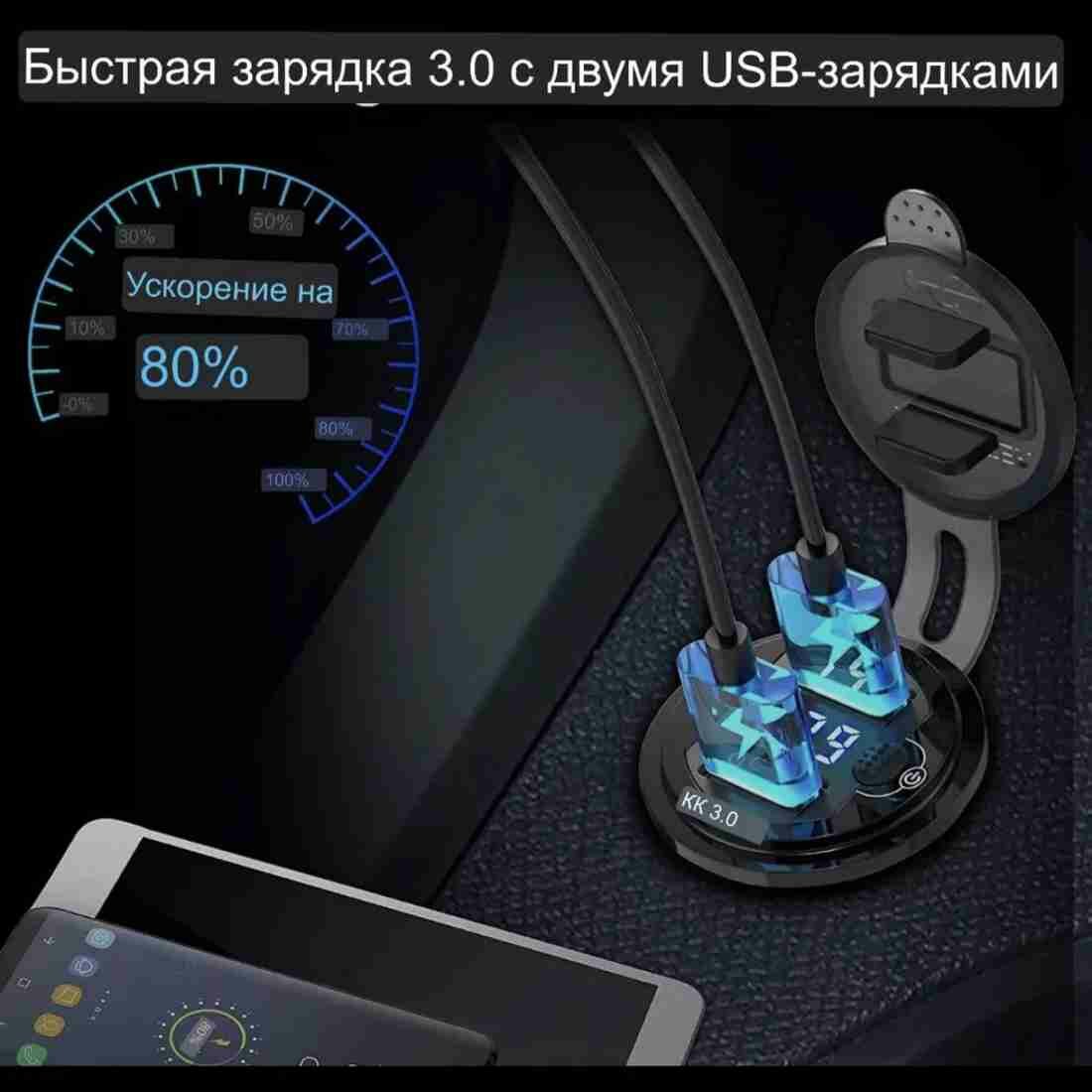 Вольтметр цифровой с выключателем и двумя USB QC 3.0 «Kombi» (синия подсветка, 12V) belais #22062 интересное: