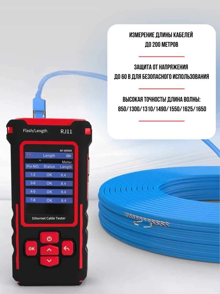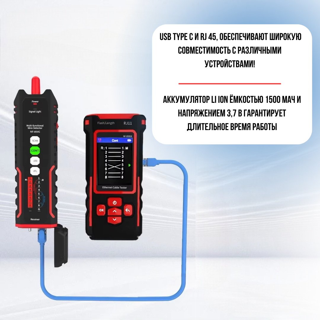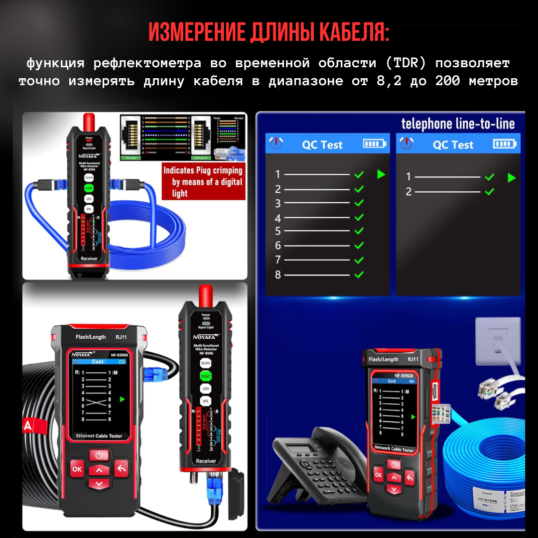 Многофункциональный кабельный тестер Noyafa NF-859GK интересное: