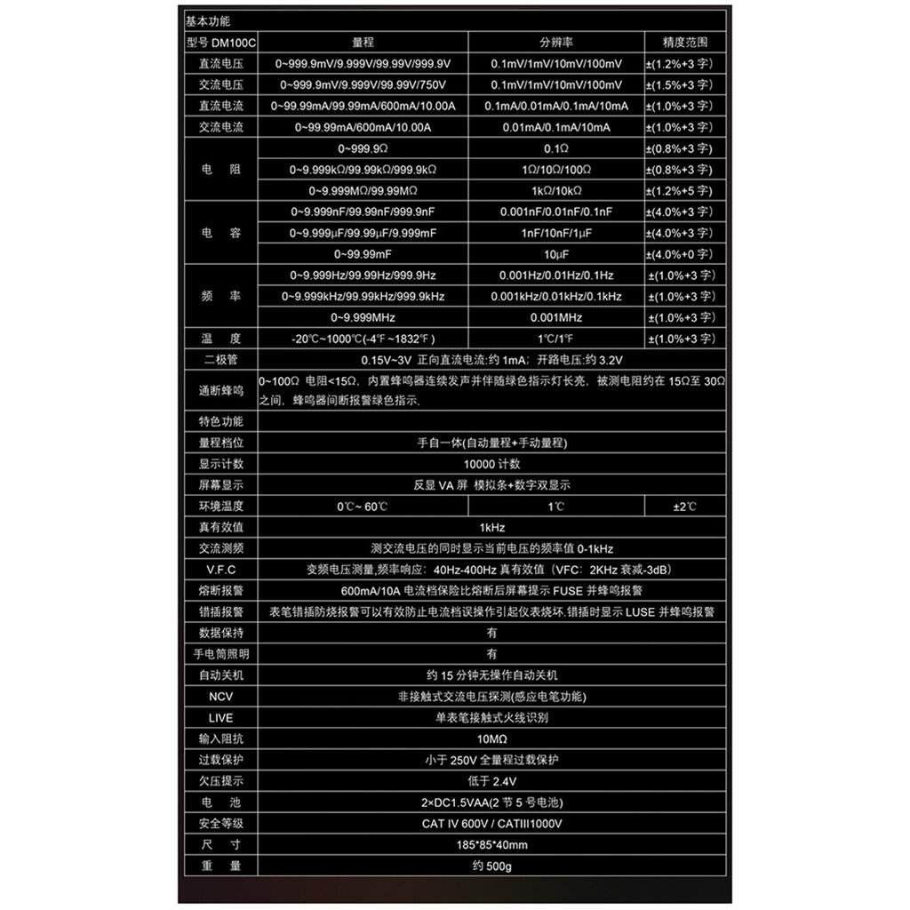 Купить Мультиметр, DM100C мультиметр с высокой точностью, автоматическое распознавание, 1 комплект