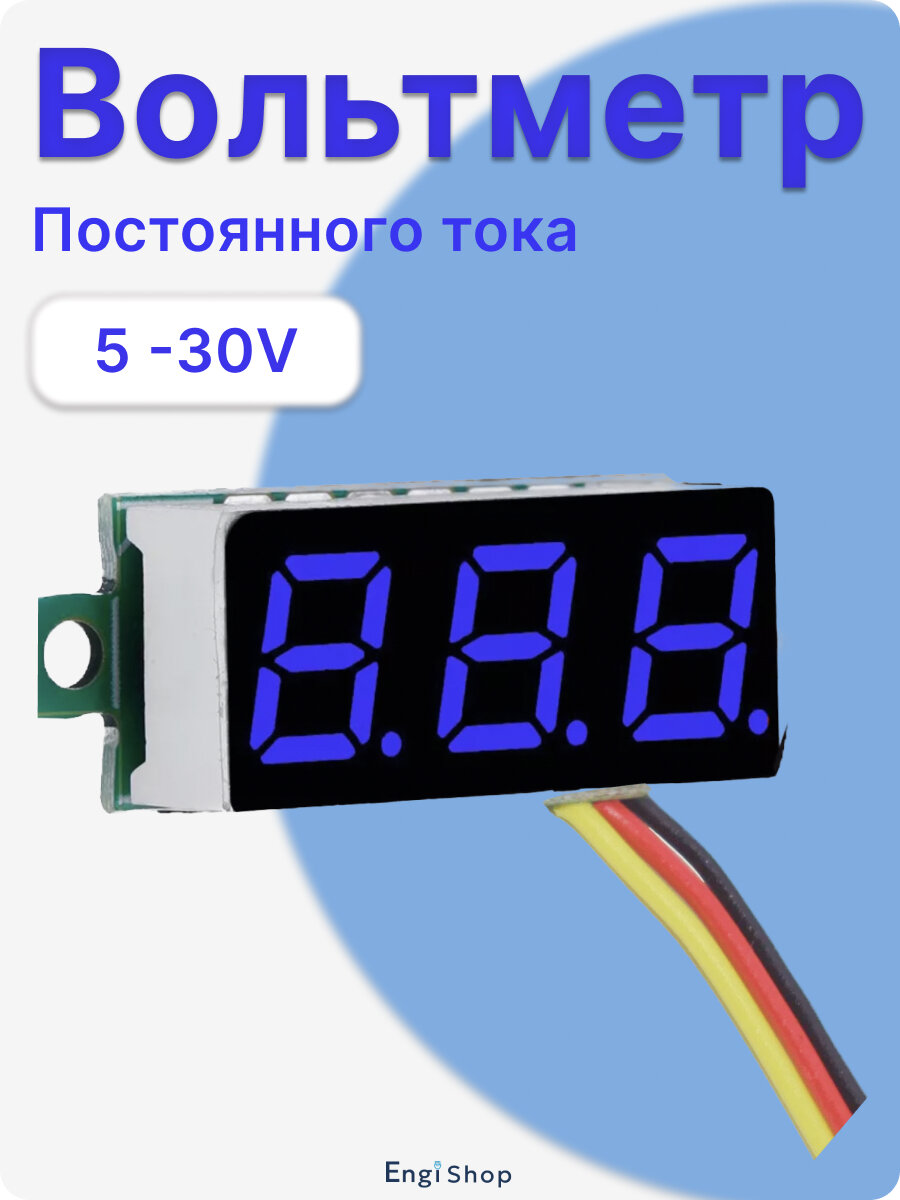 Вольтметр автомобильный цифровой врезной тестер - синий интересное: