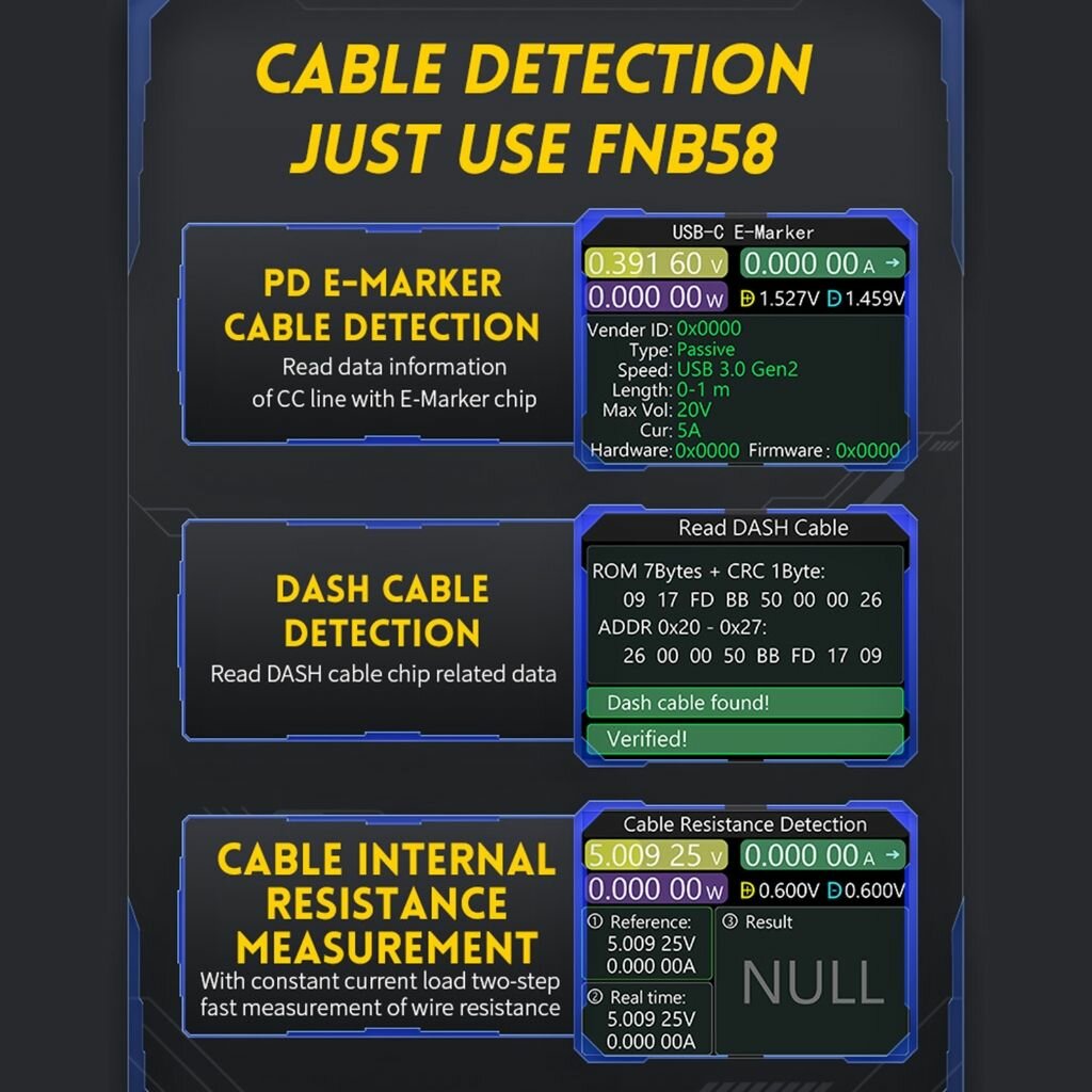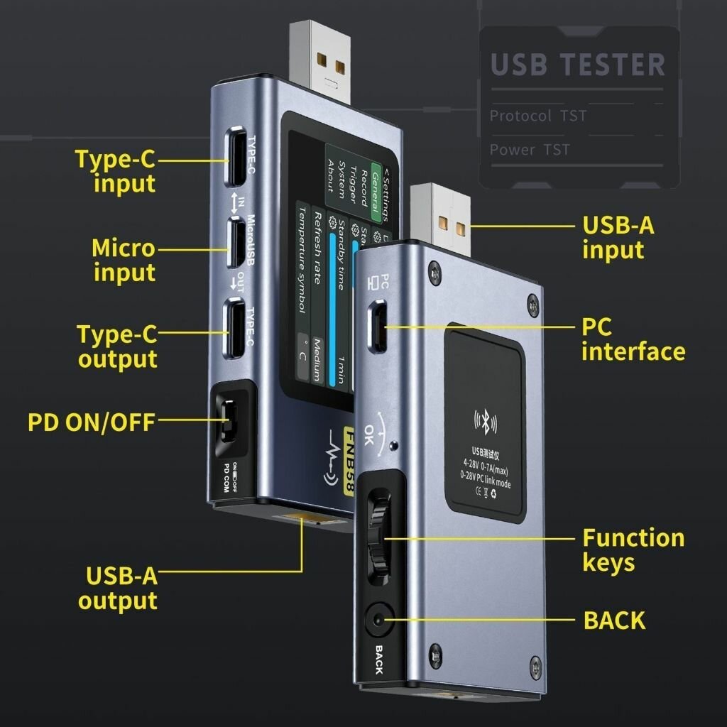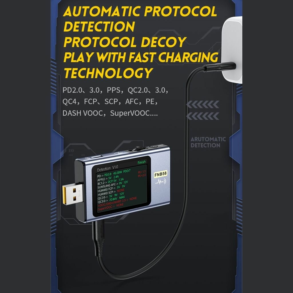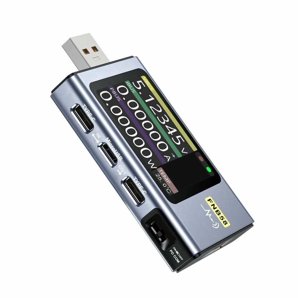Купить FNB58 USB измеритель напряжения и тока Многофункциональный тестер быстрой зарядки - черный без Bluetooth Английский