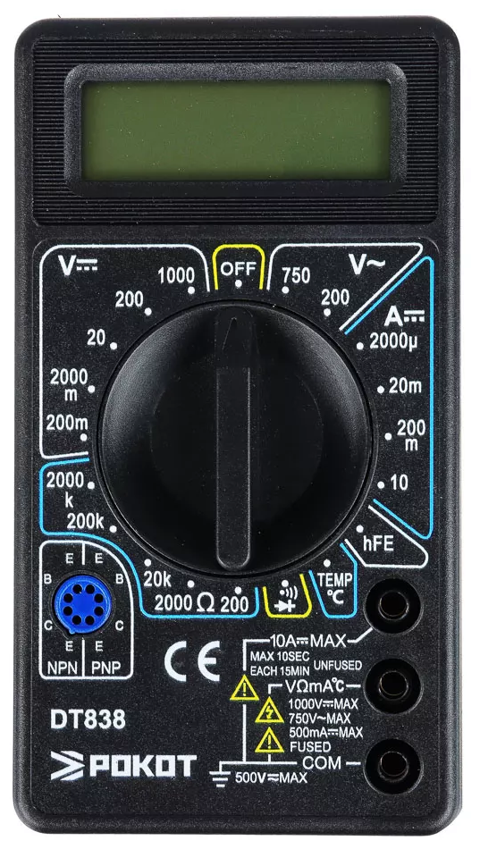 СохранитьИтак, мы решили сравнить, где же дешевле купить 2 штуки (набор) Мультиметры цифровые РОКОТ DT-838 с термопарой и проверкой транзисторов, для этого мы взяли Яндекс Маркет и 2 других маркетплейса е-Каталог и Авито, результаты сравнения цен на 2 штуки (набор) Мультиметры цифровые РОКОТ DT-838 с термопарой и проверкой транзисторов ниже.