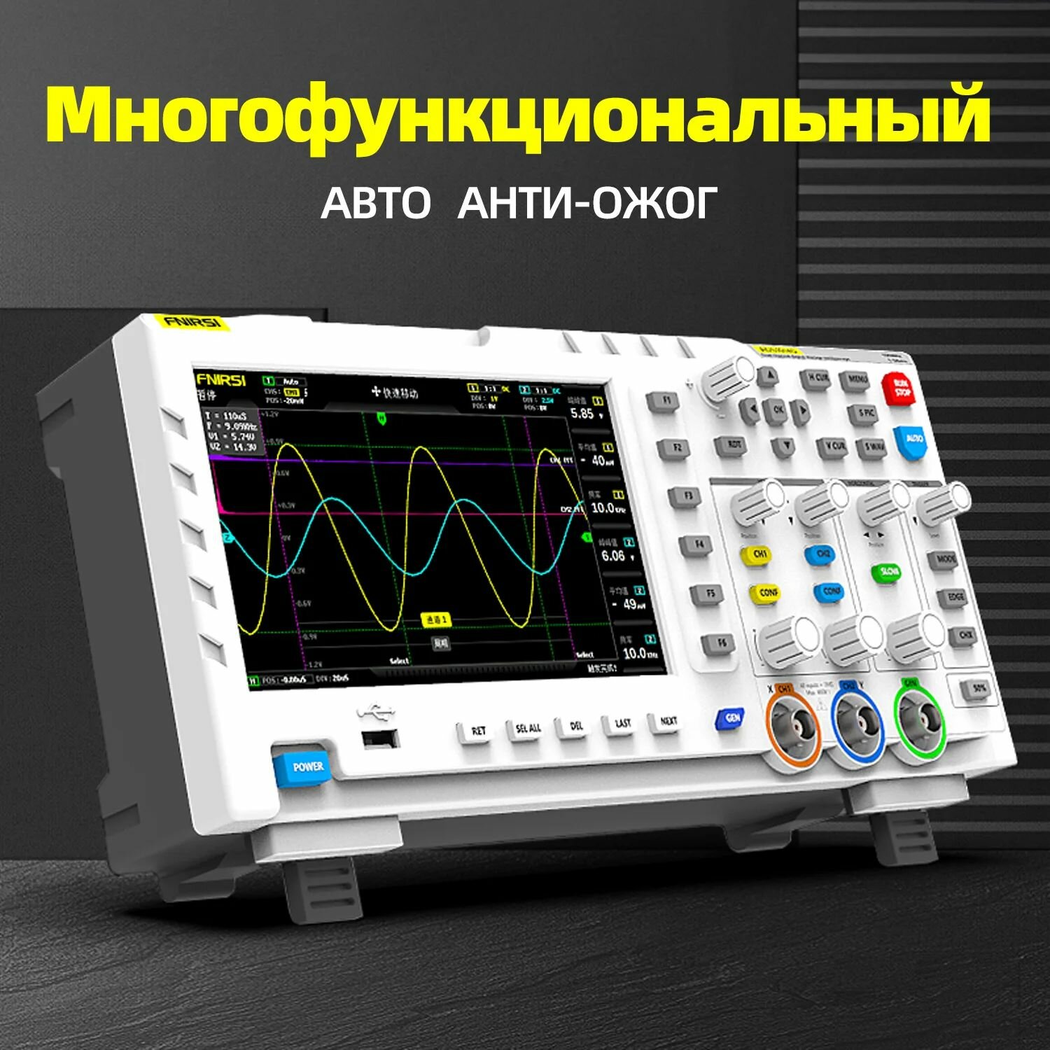 Осциллограф FNIRSI 1014D, портативный, цифровой, двухканальный, встроенный генератор сигналов, объем памяти: 1 Гб интересное: