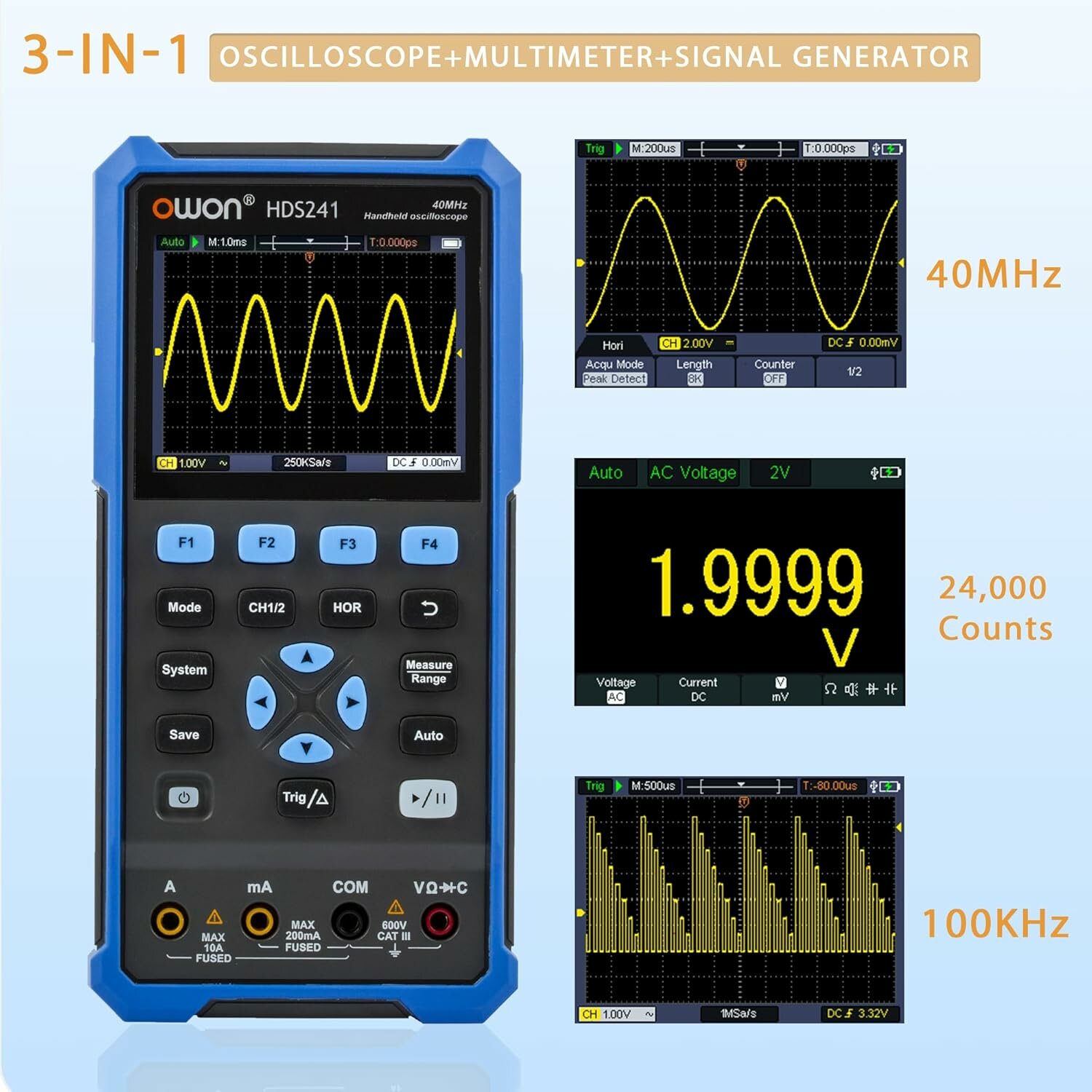 Oсциллограф генератор мультиметр HDS241 OWON 40 МГц портативный одноканальный автономный интересное: