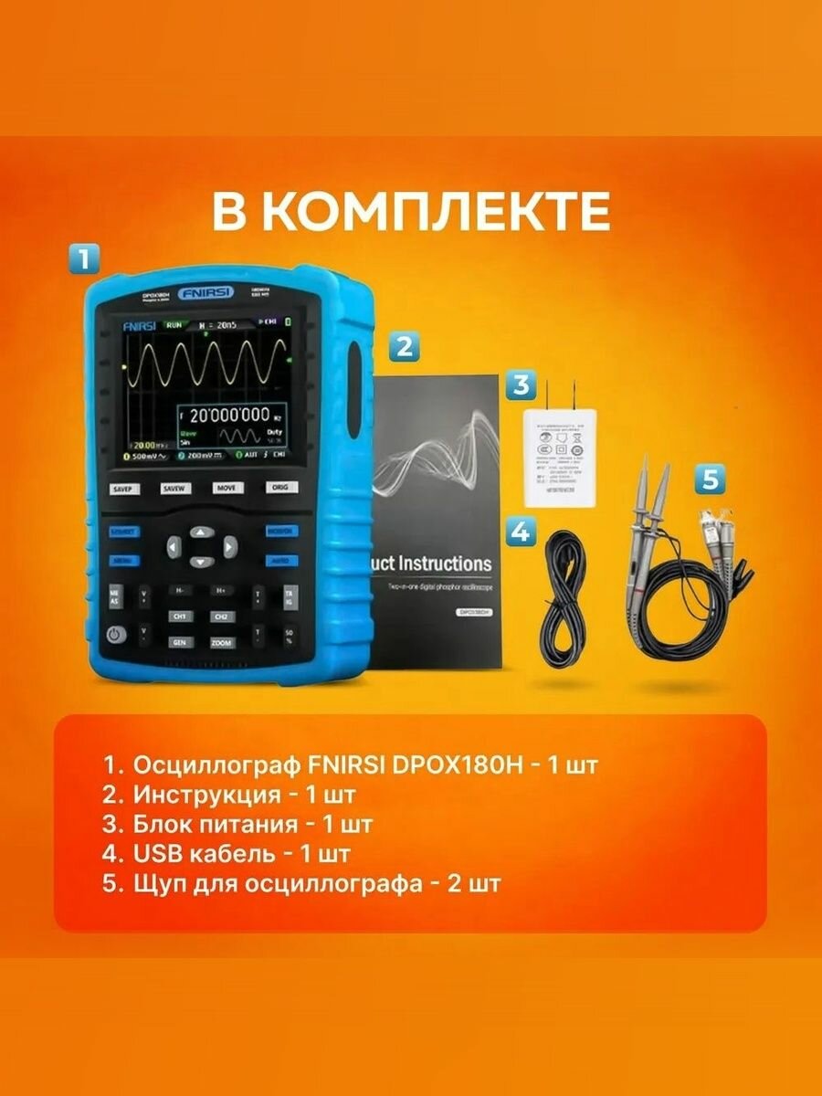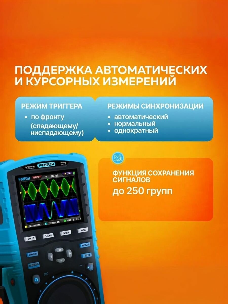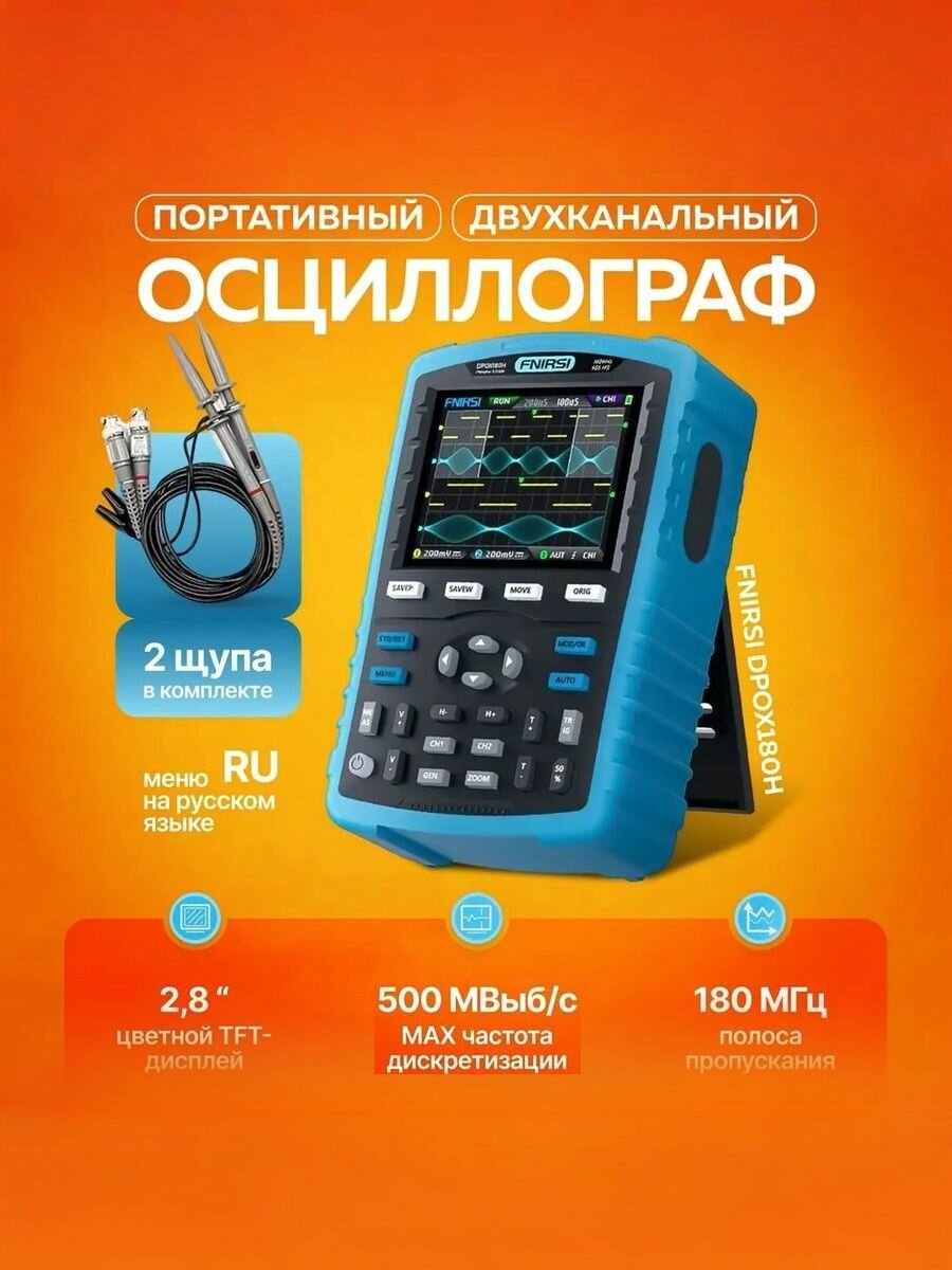 Осциллограф FNIRSI DPOX180H, цифровой осциллограф + генератор сигналов 2 в 1, желтый, 2CH, Частота дискретизации 500 Мбит/с, Полоса пропускания 180 МГц интересное: