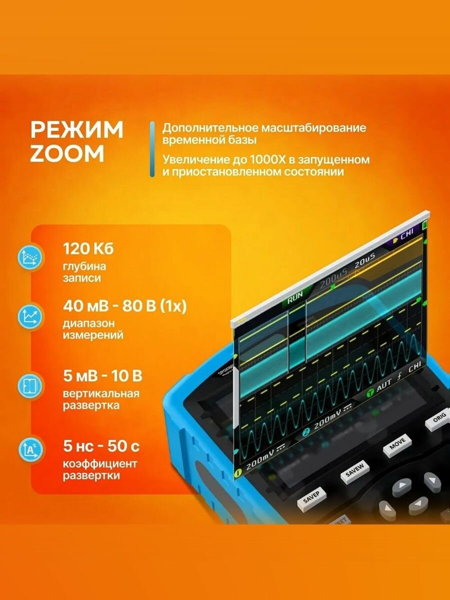 Цифровой осциллограф 3 в 1, портативный мультиметр, генератор сигналов со встроенным аккумулятором