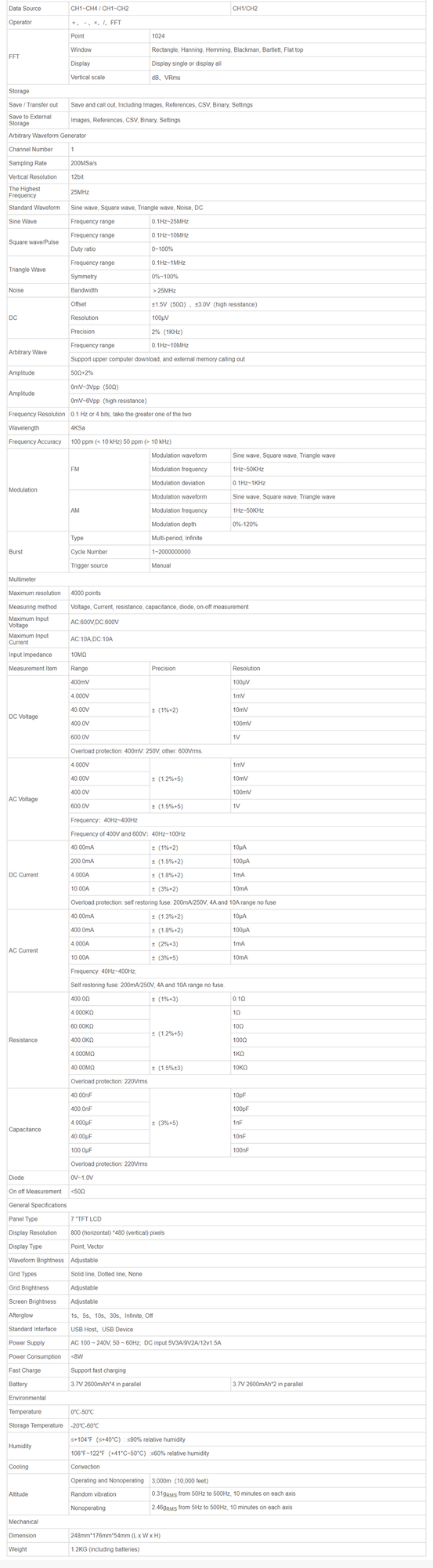 Цифровой осциллограф 3 в 1, портативный мультиметр, генератор сигналов со встроенным аккумулятором