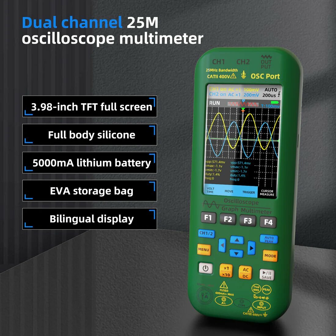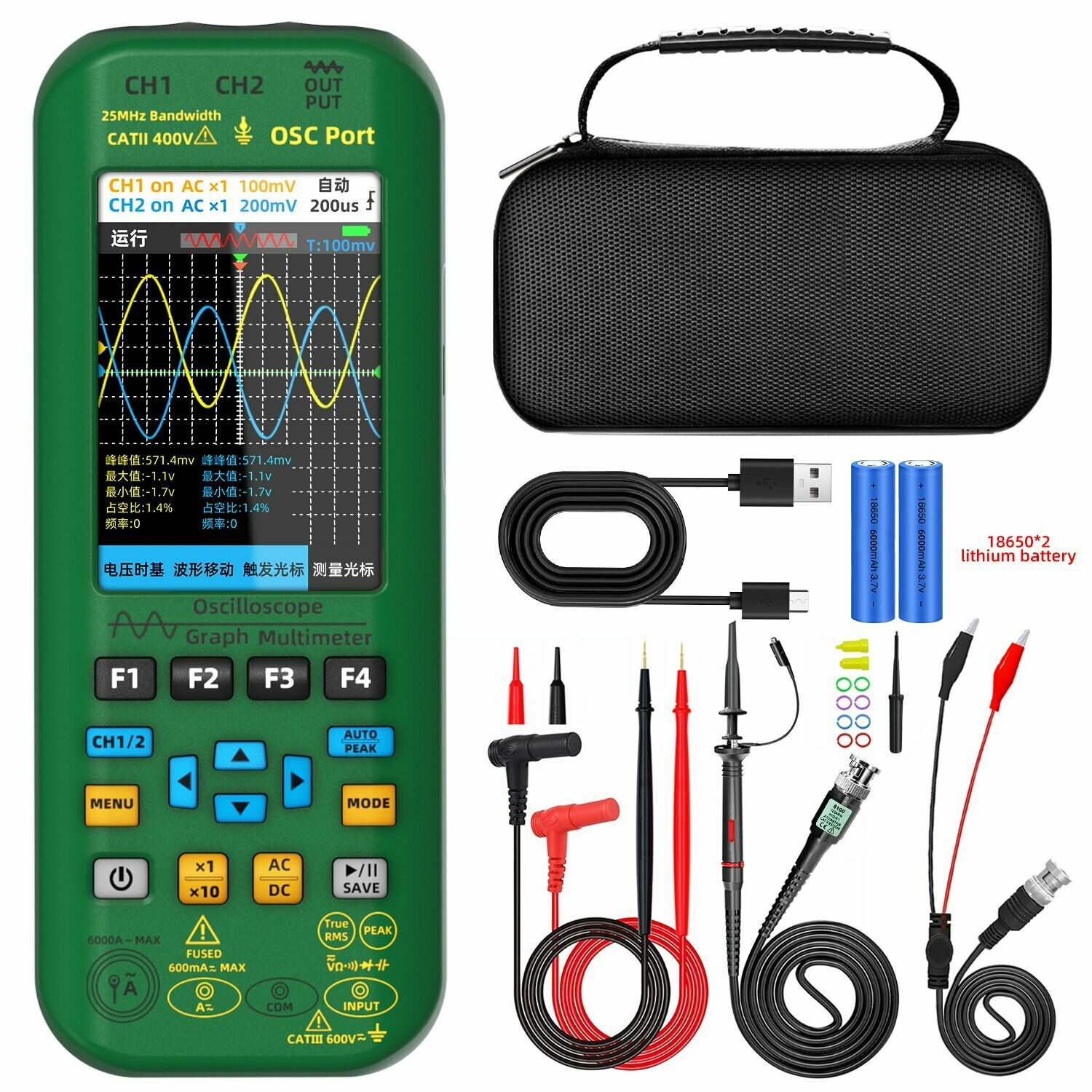 Цифровой осциллограф 3 в 1, портативный мультиметр, генератор сигналов со встроенным аккумулятором